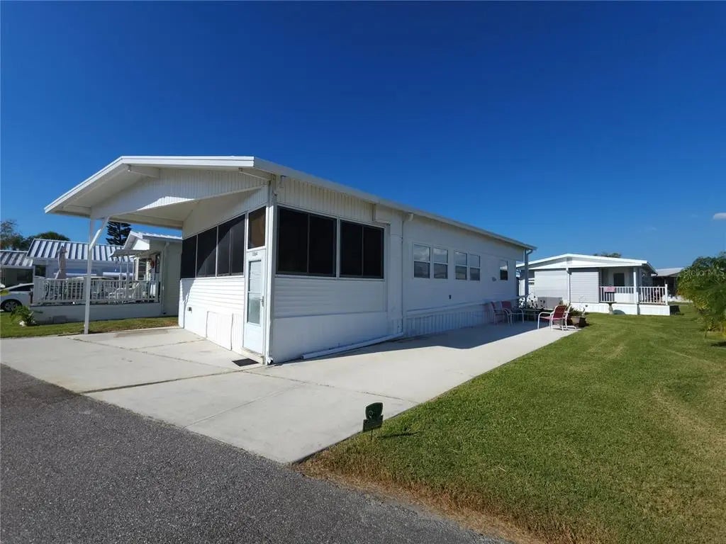 One bedroom, 1 1/2 bathroom, mobile home in active 55+ community. This home features a spacious, enclosed front porch with sliding vinyl windows. The large eat-in kitchen has solid wood cabinets and an updated sink & faucet. Open the windows behind the kitchen sink, and you will have an instant connection with guests on the porch. There is a separate laundry room with extra storage cabinets, separate water heater, and half bath. New Pergo flooring in porch, living room & laundry area. Appliances included, central air, exterior storage shed, furniture included, metal roof over. Fresh paint in most of the house. Room to park multiple vehicles. Sold for CASH ONLY with right to inspect. SUGAR CREEK COUNTRY CLUB has low HOA fees of just $525.00 per quarter which includes water, sewer, trash, basic cable, internet, and lawn mowing. The community has two swimming pools, heated spa, clubhouse, shuffleboard, tennis, pickleball, and an active social calendar during the winter months. SO MUCH TO OFFER! Sorry, this is not a dog lot.