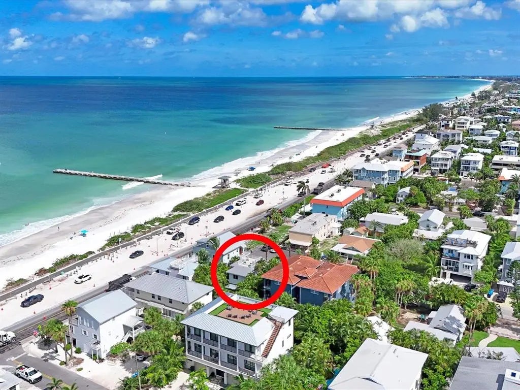 LOCATION, LOCATION, LOCATION! Discover your perfect beach getaway with this delightful house in Bradenton Beach, Anna Maria Island. The Salty Snapper Beach House is located in the heart of this picturesque island, this home offers stunning coastal views, direct beach access, and a serene environment perfect for relaxation. You will fall in love with this immaculate, turnkey furnished home across the street from the Gulf of Mexico that offers everything you need for the perfect coastal getaway or full-time residence. Take in breathtaking coastal views from the large roof-top deck that gives views of both beach and bay. Three bedrooms, each with private bath offers comfortable accommodations and there is even a queen size sofa sleeper for extra family or guests. Knotty pine floors, high-quality comfortable furniture, and tasteful, colorful coastal decor will allow you to fully unwind even when you're not at the beach. Downstairs there is a beautiful, modern well-equipped kitchen and a dining room that seats 8, two bedrooms with their own baths, a living room that seats 8 with a 45" TV, a spacious office area and a laundry room with large capacity front-load washer and dryer. Upstairs you can enjoy a game room with a 55" TV, a pool table, seating for eight, a wet bar and one bedroom with en suite bathroom with Jacuzzi tub. The fenced-in back yard offers a serene place to relax, hang out around the fire pit, enjoy grilling, lounge in the hammock or play some corn hole all while being surrounded by lush tropical landscaping. When you return from the beach you can cool off or warm up in your enclosed outdoor shower with graceful palms over head. And speaking of the beach, you are only steps from dipping your toes in the white sand and warm waters of the Gulf of Mexico. The included beach chairs, towels, umbrella, sand toys and beach cart make it easy to enjoy lazy days at the beach. Extra storage found in the large outbuilding/workshop in the backyard is a huge plus. The side yard provides space for parking a boat while ample parking is available in front for other vehicles. Enjoy nearby attractions such as local dining, boutique shopping, and vibrant island culture. This home's location is just minutes to all the restaurants, bars and shopping on Historic Bridge Street, a few blocks to catch the free trolley that services all of Anna Maria Island, and nearby Leffis Key Preserve offers a perfect opportunity for a short stroll and a public boat ramp is close and convenient. The multi-purpose path across the street is a great place to ride a rental bike or take a Segway tour. With all it has to offer, it is no surprise the Salty Snapper Beach House has been a popular rental home. Must see to fall in love so schedule your appointment today to view this perfect island beach home today!