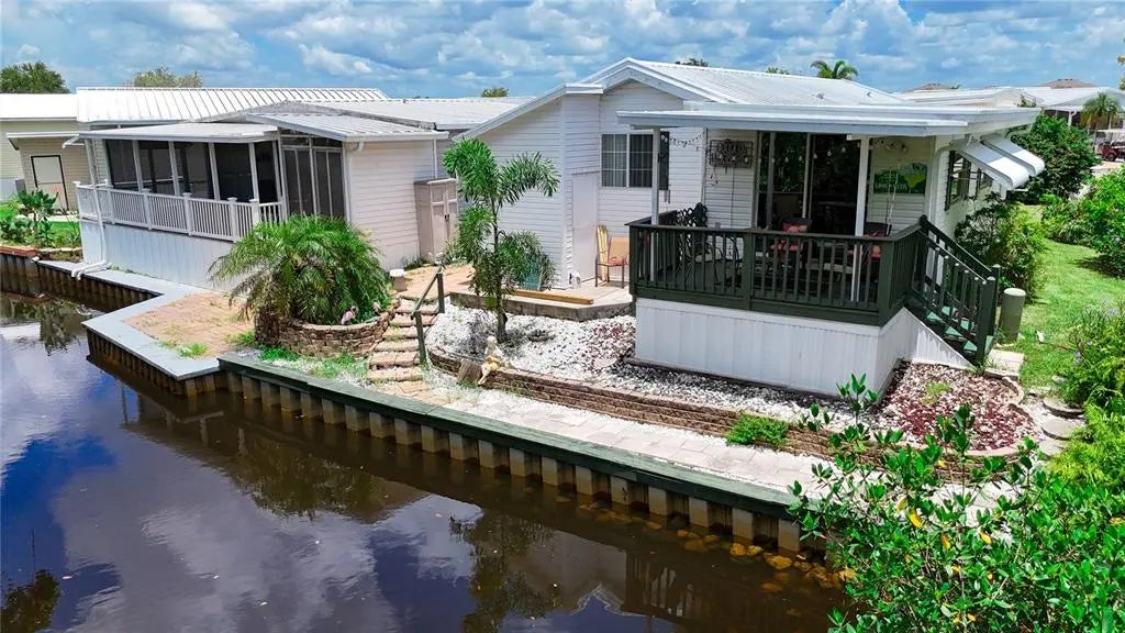 OFFERS WELCOME ON THIS FURNISHED, TWO BEDROOM, 1 1/2 BATH MOBILE HOME IN ACTIVE 55+ COMMUNITY. Enjoy the water view from the rear deck overlooking Sugar House Creek. The large living room leads through sliding doors out to the deck where bird watching and even a bit of fishing can be enjoyed. Split floor plan. Front bedroom has an en suite half bath. PET FRIENDLY, appliances included, stacker washer & dryer in laundry closet. Plumbing lines replaced, central a/c (2016), metal roof, storage shed, and covered front patio. Home is being sold in AS-IS condition, with right to inspect. CASH ONLY! This property offers an opportunity to update and make it your own. The community has NO LOT RENT and low HOA fees of just $525 per quarter which include water, sewer, trash, grass mowing, basic cable and internet. Amenities include two swimming pools, heated spa, clubhouse, tennis & shuffleboard courts, workshop, fitness room, and an active social calendar during the winter months. SO MUCH TO OFFER! What are you waiting for? Pack the pooch and start enjoying your Florida life!