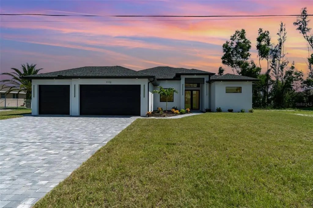 New construction with great attention to detail, quality, style and exquisite touches!!! This 4 bedroom, 3 full bathroom, 3 car garage waterfront pool home has everything. The custom boutique builder designed this home with all the bells and whistles. From the first impression and the curb appeal, this stylish home offers luxurious touches. Entering the home, you are welcomed from the foyer into an open living space and high tray ceilings. There are 4 foot plank, ceramic tiles throughout the flooring of the home, a fireplace wall with custom surround, and a stunning chefs’ kitchen with waterfall quartz island and views that showcase the pool and canal. The kitchen has 42’ white wood cabinets with additional 15” glass front cabinets adorning the top. All high end LG stainless steel appliances, waterfall quartz counters with hideaway outlets and phone chargers. All windows, sliders and doors are impact resistant. Large primary bedroom offers 2 walk-in closets with custom built-ins and an attached, enormous custom bath. The spa-like bath has double sinks with quartz counters, LED anti-fog lighted mirrors and a shower that has to be seen to be believed. Also featured is the stand alone bathtub with custom tile surround. The home also has 3 additional bedrooms with custom built in closets. The two additional baths (one also being a pool bath) are also beautifully designed to satisfy the most discerning buyer. Even the laundry room has a quartz sink and is fully complemented with cabinets. Outside is an entertainer’s dream!! Beautiful pool with sun shelf, large covered seating area, custom built in outdoor kitchen with grill, sink and refrigerator, enormous poolside lounge area all encompassed by a caged lanai with large picture window screens overlooking your beautiful canal view. Welcome home to this modern space with clean lines and a location that offers both a peaceful canal and still convenient to shops and restaurants. Flood zone x- NO flood insurance needed.