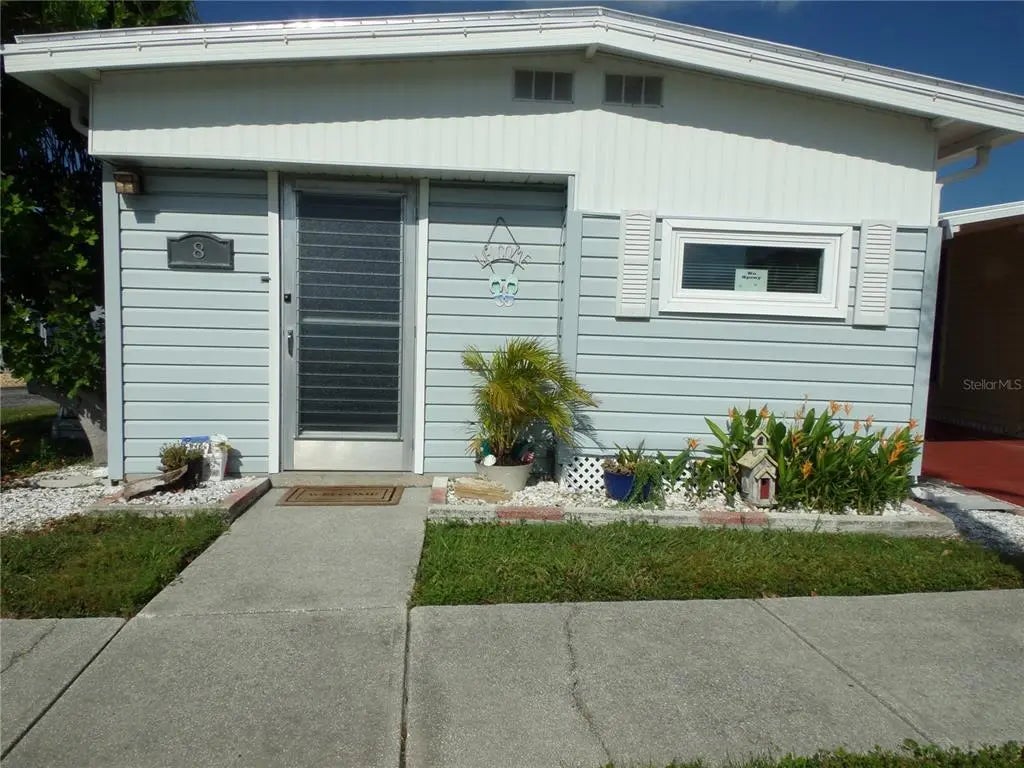 Well sought after 55+ co-op restricted mobile home park community, 1 bedroom and 1 bath home , location, location, Waterfront park, community inground heated pool, shuffleboard, pickleball, bocce ball, exercise room with equipment. marina is an extra charge for the slip. Sunset views from the sea wall. The fee includes water and sewer, lawn cutting, and all the amenities except the marina. The only thing that conveys is the bed, couch and all appliances and the 2 sheds in the back of the house Reduced price needs work after the storm.