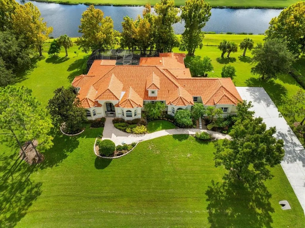 Under contract-accepting backup offers. A beautifully remodeled home is now ready for the market, offering over 4,500 square feet of custom-built luxury on an acre lot. This pool home is in the gated community of Cypress Creek Estates, situated near the Manatee River. The entry features custom LED glass engraved doors, which lead into an open floor plan with views of the pool and the lake. Soaring 10-foot tray ceilings have recessed lighting in the living, dining, and family rooms. Tall sliding glass doors on the east side and beautiful arched bay windows on the west side allow you to experience tranquil sunrises and sunsets. Four bedrooms have attached full bathrooms and walk-in closets. The den has a bathroom accessible to the pool area. The master bedroom has direct access to the pool lanai. Hurricane-resistant reinforcement in the primary bedroom walk-in closet adds peace of mind. One ensuite bedroom has its own keyed access from outside for guests to use privately. The generously sized kitchen features custom wood cabinets, new quartz countertops, and stainless steel appliances, and is bathed in natural light the entire day from the tubular skylights. That natural light is also provided in four other areas of the house. The screened lanai also features a small kitchen for outdoor entertaining. The entire house has easy-to-maintain ceramic tile floors. The three-car garage has a built-in storage room. Custom landscaping includes mature trees and boundary hedges. The brightly lit laundry room has a large sink along with plenty of cabinets and an in-wall ironing board. A brand new tile roof adds to the superbness of this residence. Additionally, the home is equipped with three A/C units, each servicing separate zones, allowing for personalized comfort throughout the house while optimizing energy efficiency. Discover what peaceful living is near major restaurants, shopping, and the highway exit to Tampa or Sarasota. The reputed custom luxury home builder spared no expenses to make it withstand severe weather. There was no structural damage or flooding in the recent or prior storms. Schedule your showing today.