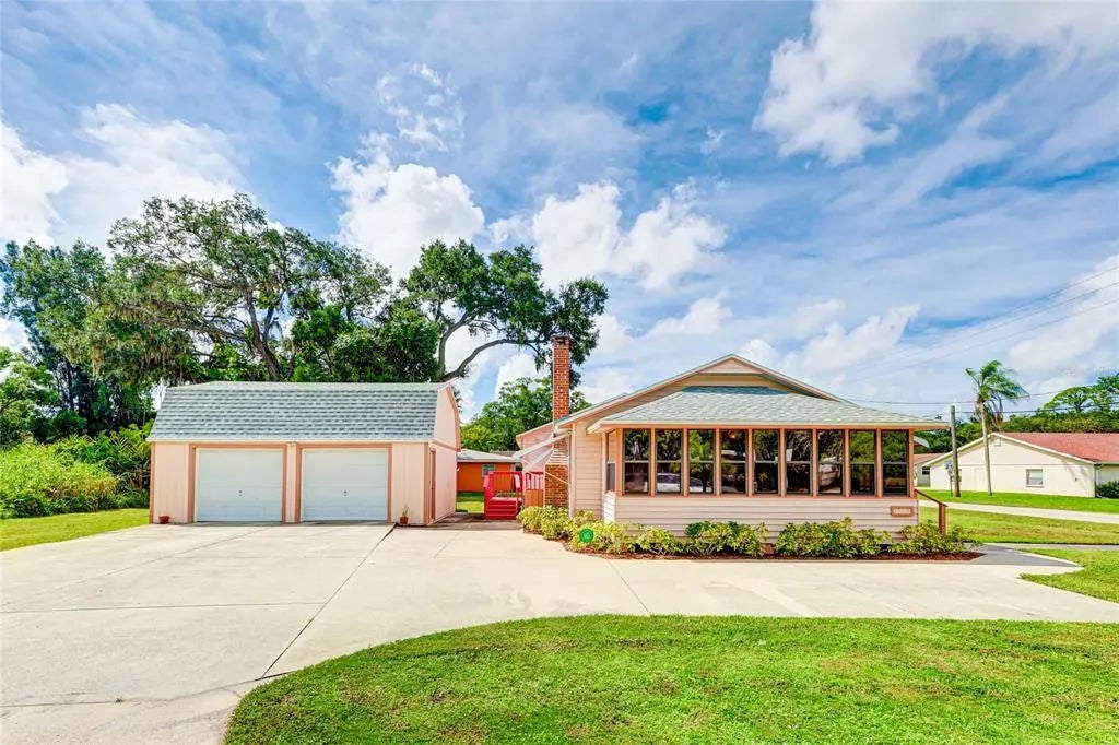 Old Florida Charm awaits, with a NEW ROOF, NO HOA and NO CDD! This is a large lot so bring your boat, rv, and work equipment! This home is perfect for an income property or for a business owner! The property has been well maintained with newly renovated bathrooms, updated windows, updated electrical and wood trim replaced in all main areas. The large family room is open and inviting with lots of natural light. Enjoy cooking while entertaining in the open floorplan. The property has a shed and a separate 2 car garage with a large loft inside for plenty of storage or renovate the garage into an extra income property. Possibilities are endless! Reimagine this charming property with your own touches and live restriction free. This property is conveniently located near highways, bus lines, restaurants, parks, shopping, medical offices and just miles from the beautiful Gulf Coast beaches!