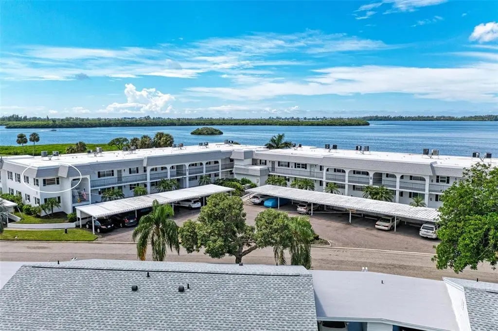 One or more photo(s) has been virtually staged. Welcome home, and bring your boat, as community docks are available with no fixed bridges to the Gulf! Mount Vernon is a friendly 55-plus, amenity-rich, vibrant, and very active waterfront community. There are many socials and fun interactive activities in this maintenance-free community, offering a wonderful lifestyle at a great value for easy living. This spacious two-bedroom, two-bath, light and bright corner top-floor unit provides breathtaking water and sunset views of Sarasota Bay. Enjoy your morning coffee or watch the birds at sunset in the enclosed lanai overlooking the pond and Bay. Plus, the sliding glass doors open to allow a cool breeze for a relaxing atmosphere. Step into the home to find a split bedroom floor plan, large kitchen with eating area, open living and dining area, primary bedroom walk-in closet and en-suite bath, extra storage space, roll-down hurricane shutters, ceiling fans throughout, Sarasota Bay water views and the pond with water fountain from the primary bedroom window and back lanai. The home only needs your personal touch and updates to make it your own. The conveniently assigned covered carport parking spot and personal storage are located just outside your front door. This charming residence is just a few short steps to the community amenities, including the heated swimming pool, clubhouse, tennis and pickleball. The association fees include water, sewer, trash, recycling, landscape maintenance, inside/outside pest control, cable, internet and exterior maintenance repairs. The clubhouse has been newly remodeled with a new roof, a newly paved parking lot, a banquet room, billiards, ping-pong, a library and a game room. Outdoors, you will find the heated pool, a lakeside veranda, boat docks, tennis and pickleball courts, shuffleboard courts, spa, sauna, workshop, woodshop, golf putting green, walking paths, butterfly garden, bay-front park, kayak storage and launch, bayside pavilion, lakeside gazebo, bird sanctuary, many ponds and spacious grounds of nearly 90 acres of wonderful Florida wildlife. Boat docks are available for a small fee. Sorry, no pets allowed. Only minutes by car, boat and bike to Anna Maria Island's stunning sugary sandy beaches, restaurants, live music, shops and medical facilities. Make your appointment today to see this amazing condo at a great value!
