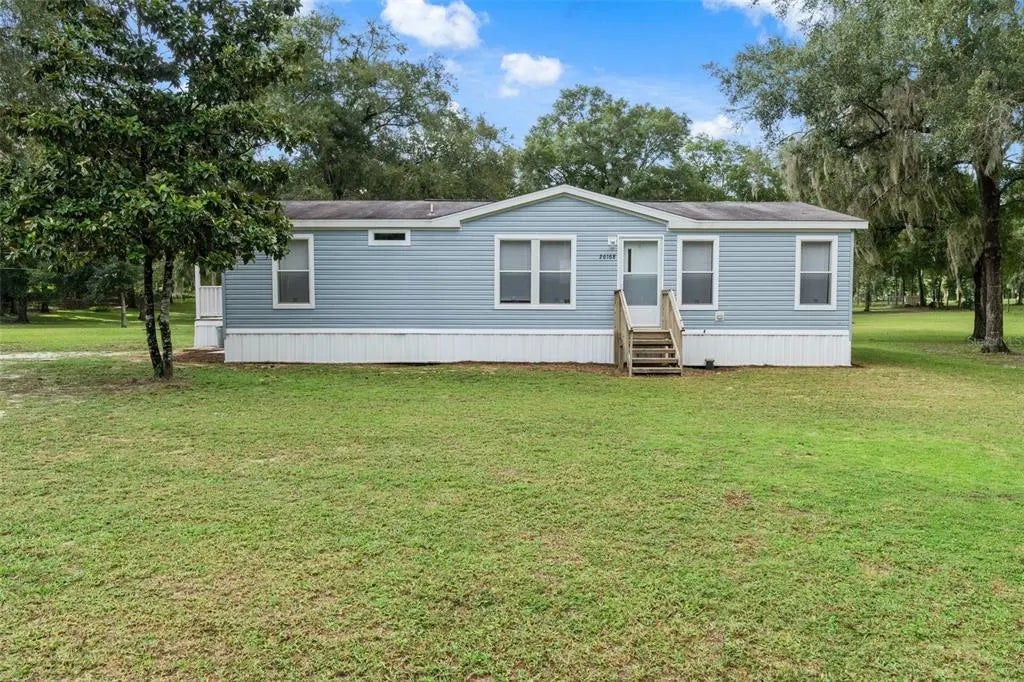 One or more photo(s) has been virtually staged. Discover the endless possibilities with this charming 3-bedroom, 2-bathroom manufactured home, nestled on a 2.50-acre lot. Offering ample space, privacy, and versatility, this property is perfect for those seeking a peaceful retreat. The open layout seamlessly connects the living, dining, and kitchen areas, creating an ideal setting for family gatherings and entertaining. The master suite, located on one side of the home for added privacy, features a walk-in closet, an en-suite bathroom with dual vanity, a soaking tub, and a separate shower. The third bedroom offers flexibility—perfect for a home office, hobby room, or an extra bedroom. The kitchen boasts a central island with seating, abundant cabinetry, and a spacious pantry for all your storage needs. An indoor laundry room adds convenience to everyday life. Outdoors, the property is adorned with mature trees, providing natural shade and a serene backdrop. A 34x17 metal shed, equipped with tie-downs, concrete floors, windows, a roll-up garage door, and wiring for electricity, adds practicality and functionality. The partially fenced yard is ideal for pets to roam safely, and there's plenty of space to park your RV or recreational vehicles. Recent updates include brand-new carpeting with a transferable warranty, fresh interior paint, updated fixtures, and ceiling fans. The back of the property borders the beautiful Croom Reserve, adding an extra layer of privacy and natural beauty. Whether you're looking for a spacious family home, a place to enjoy your hobbies, or a property with room for your pets and vehicles, this home offers it all. The possibilities are truly endless!