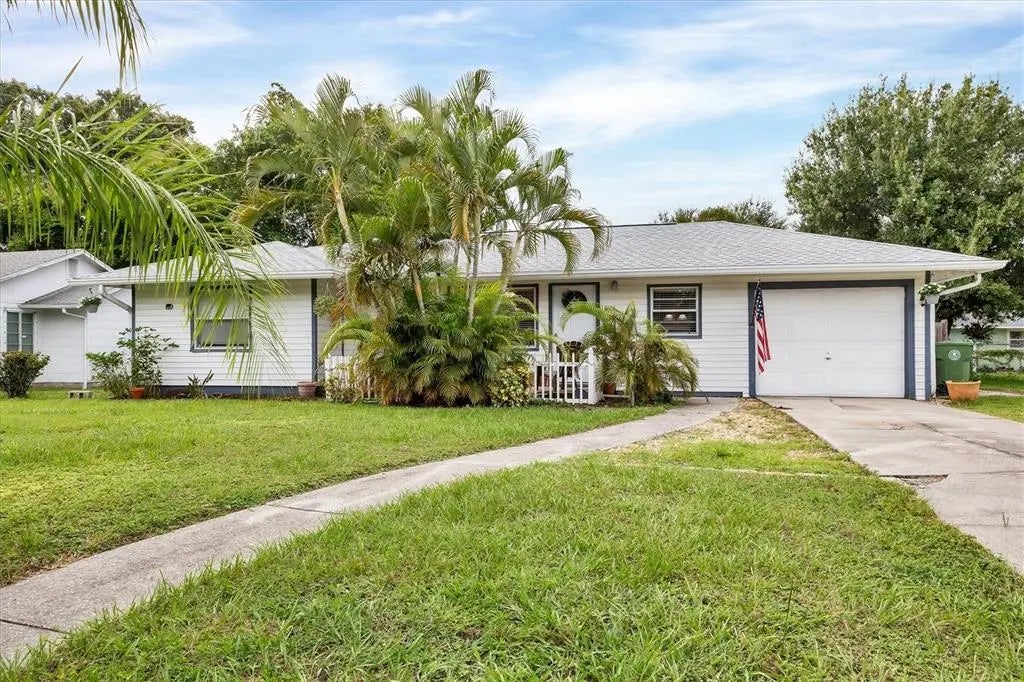 This West Bradenton home is located within easy walking distance to Manatee High School and is priced to sell! Enjoy a split plan offering 3 bedrooms, 2 bathrooms and a one car garage. An open wood deck area landscaped by Adonidia palms for added privacy welcomes you as you arrive at the front entrance. The kitchen which offers granite countertops, pots and pan drawers, stone backsplash, maple cabinetry and a barstool counter area leads to a cozy dining room/breakfast nook that could easily function as an office. Flooring includes tile on the diagonal in the main living areas, laminate flooring in the Primary Suite and carpeting in the two bedrooms. French doors lead to the large fenced in backyard where you can enjoy relaxing in a tropical garden area bordered by birds of paradise plants and palm trees. A paved patio areas is perfect for your bbq cookouts and makes for easy entertaining. Little ones and pets are sure to enjoy the nicely sized fenced in backyard where they'll have plenty of room to romp and play. This property offers plenty of space to accommodate a swimming pool. Enjoy the savings of having a 2022 Rheem water heater, 2022 roof and 2017 A/C with newer ductwork. This is a charming home just waiting for its new owners to claim it!