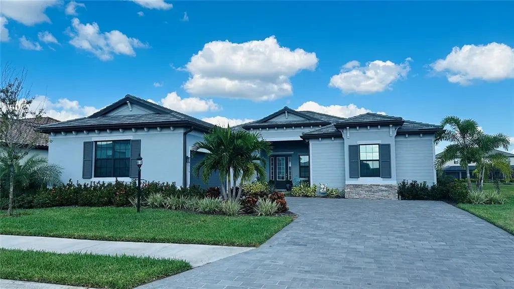 Nearly new immaculate, sought after Agostino II model with 3 Bedrooms, 3 Full and 2 Half Baths, oversized side load two car garage. This beautiful home is located in the Exclusive Estate Homes section of Lorraine Lakes. This 69' wide Estate home is situated on over a quarter acre lot overlooking a tranquil lake. This home features 8' doors, 10' ceilings, wood looking porcelain tile with an inviting foyer, gourmet kitchen with granite countertops, 42” upper cabinets with under cabinet lighting, an over-sized island overlooking a huge open-concept dining/living room with tray ceilings and views of the lake. White shaker style kitchen, bath and laundry room cabinets. Stainless steel appliance package includes a gas cooktop, dishwasher, French-style refrigerator with freezer on the bottom, a built in microwave oven and electric wall oven with convection, air fry, steam and timed functions. A Split floor plan with an ensuite master bedroom with two walk-in closets, large shower and garden tub. The two split bedrooms are ensuite, each with full baths. Upgrades include soft close cabinet doors/drawers, glass backsplash tile in the kitchen, solid wood shelving in the two pantry closets, ceiling fans, light fixtures in dining and foyer, wood beams in the living and dining tray ceilings, board and batten feature walls in the den/office. The primary suite features a board and batten wall and the closets have barn doors and custom built in closet system. The garage door has been insulated as well as insulation in the garage attic. The community is gated with 24/7 gate attendant and also has security that patrols the neighborhood. The HOA maintains the lawn and sprinkler system. Lorraine Lakes 25,000 square foot Clubhouse has a resort pool, lap pool and a splash pool with tipping water buckets and play area; on-site restaurant with indoor and outdoor full bars; in-door full sized basketball court; fully equipped fitness center with TRX equipment and yoga; bocce ball, sand volleyball, arcade room; outdoor basketball court, pickleball and tennis courts; corn hole, and golf putting green and numerous resident events. Truly a multigenerational neighborhood for all ages. Lakewood Ranch is the number one best-selling multigenerational master planned community in the United States. *Professional Photography coming soon*