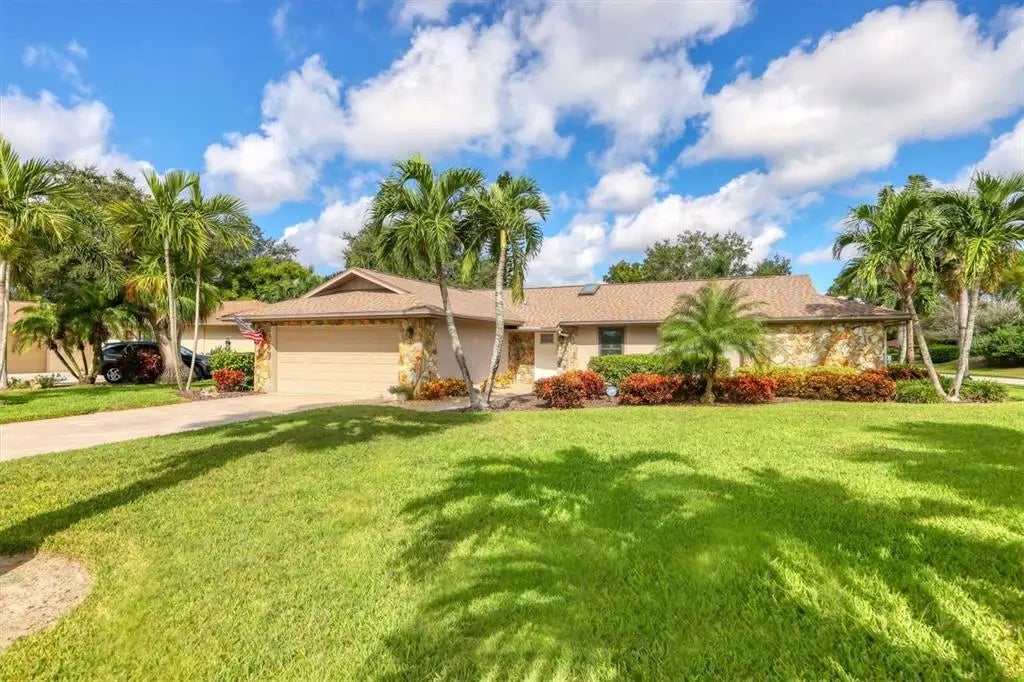 Welcome to your new tropical sanctuary on a spacious and professionally landscaped corner lot spanning over a quarter acre in The Crossings! This beautifully updated 3-bedroom, 2-bathroom home offers a perfect blend of comfort and style, making it ideal for modern living. As you step inside, you’ll be greeted by NEW tile flooring that flows seamlessly throughout the main areas. The versatile L-shaped living area to your right offers flexibility to fit your lifestyle—whether you prefer one large, open living space or dividing it into two separate areas for a cozy living room and an additional office or sitting area. The heart of this home is the updated kitchen, featuring beautiful granite, sleek NEW appliances, including a NEW refrigerator and NEW range, with counter seating for casual meals. Just off the kitchen, the dining room provides a dedicated space for sit-down dinners, while the open layout allows for easy socializing between the two areas. Retreat to the primary bedroom, thoughtfully positioned for privacy. It boasts a spacious walk-in closet with a stylish sliding barn door that leads to an updated en suite bathroom, which also features this chic design element. NEW carpeting adds warmth and comfort to this personal haven. The two secondary bedrooms, also with NEW carpet, are located on the opposite side of the home, providing an ideal setup with a full bathroom conveniently situated between them. Practical upgrades abound, including NEW washer and NEW dryer, a NEW AC system with NEW ductwork, a NEW hot water heater, and a comprehensive plumbing re-pipe in 2018. Enjoy peace of mind with NEW impact windows and doors throughout. Step outside through the sliding doors to your spacious screened lanai, perfect for outdoor dining, lounging, or entertaining friends. Beyond the lanai, you'll discover a private backyard oasis featuring a NEW HEATED and CHILLED in-ground saltwater pool with in-pool LED color changing lighting, surrounded by pavers and complete with LED lighting for nighttime enjoyment. Beyond the pool area, the stone landscaping provides plenty of room to create your own oasis, whether you choose to add a hammock, chair swing, or a cozy grilling area. Need extra storage? A 10x12 Tough Shed equipped with lighting and electric provides the perfect solution. The backyard is fully fenced, with double doors that open for easy access, perfect for storing your jet skis, boats, or other outdoor toys. The homes Roof was replaced in 2016. Beautiful landscape lighting throughout the property enhances the exterior, creating a warm and inviting ambiance at night. Best of all, you can enjoy this freedom with NO HOA, allowing you to truly make this property your own. Conveniently located just minutes from a plethora of shopping, dining, medical, and of course our world famous beached. Don’t miss your chance to call this beautiful property home!