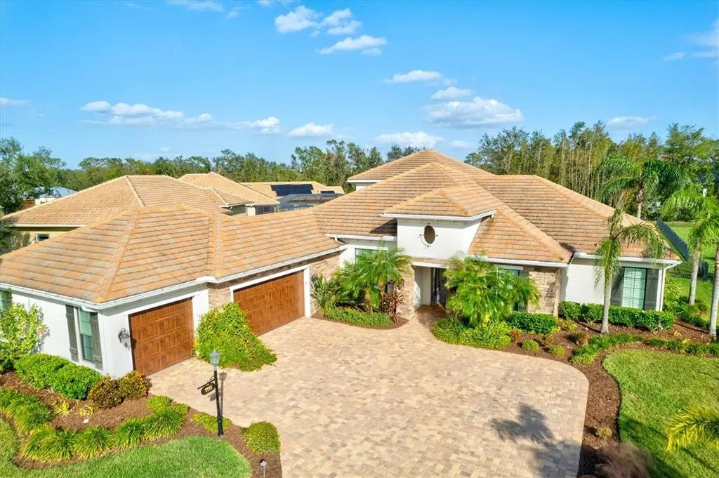 Your dream home awaits! This custom Bruce Williams home, with a freshly painted exterior in June 2025, offers a seamless blend of ultimate privacy and modern luxuries throughout. Meticulously designed to include 4 bedrooms, 3.5 bathrooms, an office, den, bonus room, and exercise room. Situated on just under a 3/4 acre lot, with an expansive outdoor area and over 4500 sq ft of living space, this home was made for entertaining. The kitchen is well-appointed with beautiful wood and glass cabinetry, quartz countertops, a large island, and high-end Thermador appliances. Designed as an open floor plan with beamed ceilings, the beauty of this home will not go unnoticed. The owners suite is equipped with custom closets, private access to the lanai, and an on-suite that includes a beautiful soaking tub. The main level includes two of the guest bedrooms with a shared bathroom. Also on the main level is the office and the den. The second level includes the fourth bedroom, a bonus room, and an exercise room. Upgraded light fixtures and fans, crown molding, tray ceilings, custom closets, and plantation shutters are only a few of the notable upgrades throughout this home. The upgrades don’t stop at the interior but continue as you step into your private backyard oasis. The lanai is paved with newly installed Diana Royal leather finished marble, two covered areas with tongue and groove ceilings rich in color, a large saltwater pool and spa, and an outdoor kitchen and bar equipped with a gas grill and wine fridge. With an outdoor storage closet, there is ample room for all of your toys. Outside of the covered area you will enjoy a brick paved extension patio. The private view is one to be admired and highly coveted. A whole home generator, impact windows and doors, and extended 3-car garage with EV charging station will check all the boxes for the man of the house. Elevate your lifestyle here in Winding River, a waterfront community that sits along the banks of the Manatee River. With only 62 homesites in this maintenance free community, residents have access to the Manatee River by way of a private, resident-only boat launch. Conveniently located minutes from I-75, restaurants, shopping centers, golf courses, beautiful parks, and the area’s top-rated schools.