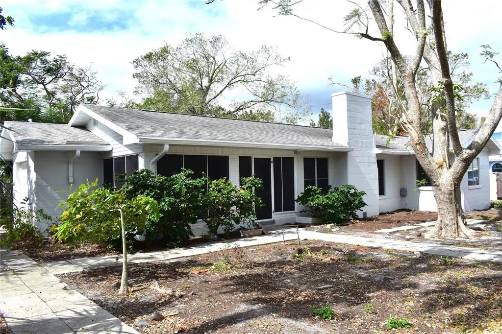 This adorable, vintage cottage could use some TLC and some imagination but could easily be brought back to life. Perhaps even enlarged for a bigger family home. Nestled among the oaks on a third of an acre with a huge front lot and equally large fenced back yard, this home is as welcoming as it is cute. Walking the path to the front door you will find a fairly large screened patio with French doors leading into the living room. The focal point in the living room is the fire place with its painted white brick and black painted vents. The kitchen was remodeled several years ago with wood cabinets and black granite countertops. The bathrooms are original but functional. There is a oversized, one car garage with washer and dryer hook ups and an attached carport. The interior has been painted and the exterior will be completed by the end of the week. Storm delays kept us off schedule. There is a wonderful patch of palm trees in the back yard that could be made into quiet space with hammock or make it a sweet picnic area. Imagination is key when it comes to this home and it is just waiting for your fresh ideas.