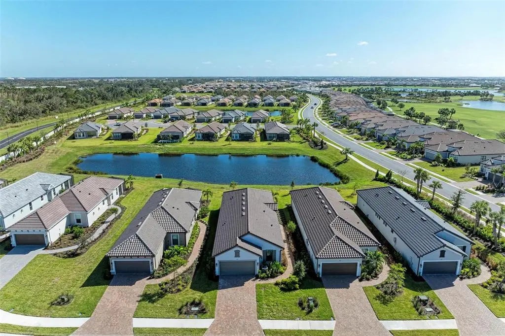 Enjoy a membership at Esplanade Azario Golf and Country Club with all the benefits! This beautiful 3-bedroom 2 bath plus den home is brand new and has never been lived in. This quality-built home is energy efficient with a Life Source water system that services the entire house and offers the luxury and peace of mind of new construction without the wait. The kitchen is cheerful & bright with stainless appliances including a natural gas range and plentiful cabinet and counter space. The dining and living rooms are highlighted by tall sliding glass doors that provide gentle natural light and tranquil water views. The luxurious primary bedroom also features water views, and leads to an ensuite with dual sinks, and a fabulous walk-in closet. On the opposite side of the home, guest bedrooms provide privacy and ample space. With this bundled golf home, you’ll have access to the championship golf course. Esplanade at Azario offers a vacation lifestyle reminiscent of a 5-star resort with the finest amenities: a spa with hair and nail salon, massage room, state of-the-art fitness facilities with optional classes, tennis courts, pickleball courts, walking paths, community garden, heated lagoon-style swimming pool with cabanas, Bahama bar, coffee & smoothie shop, restaurant, community lawn, and a social director. Fun neighborhood events include wine tastings, culinary classes, card games, live music, and holiday events. With a prime location in Lakewood Ranch, you¡¯ll have easy access to dining, shopping, Farmer¡¯s markets, polo fields, medical offices, and more. You have the opportunity to live like royalty so close to amazing dinning and shopping in the #1 Master Planned Community in the United States. Want to emphasize that we have Life Source filtered water throughout the entire house and a fully upgraded laundry room, loaded with cabinetry for ample storage.
