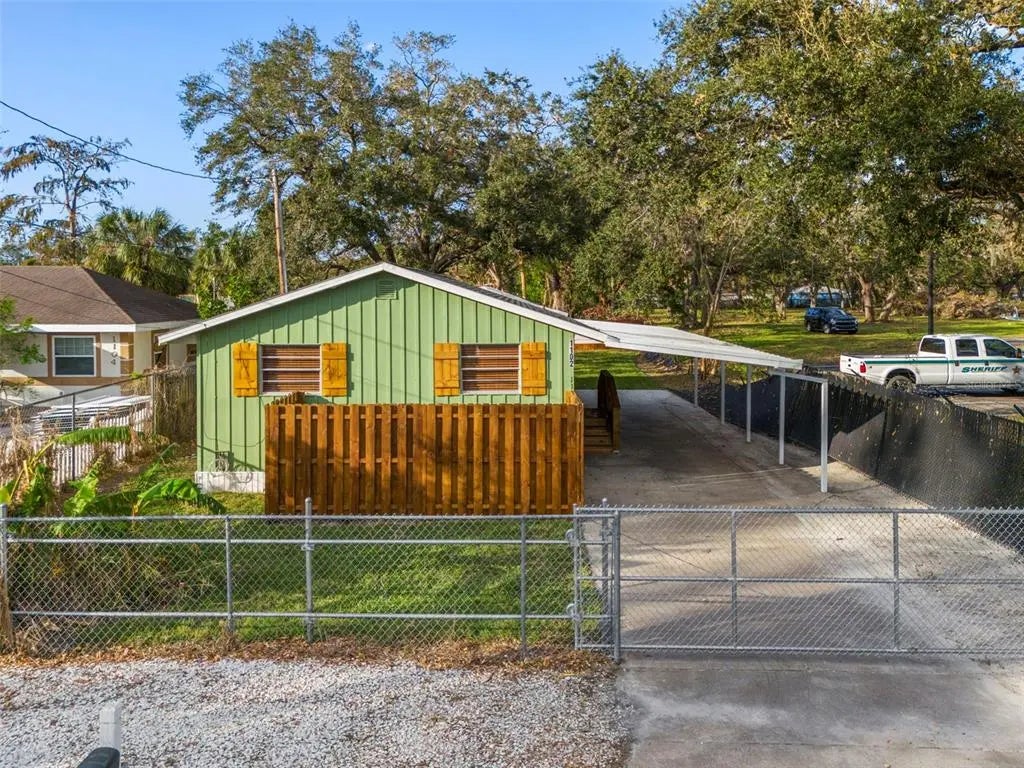 Welcome to this charming and beautifully renovated 2-bedroom, 1-bath home, offering the perfect opportunity for first-time homebuyers or investors! With recent upgrades throughout, this property combines modern comfort with quaint character. Inside, you’ll find new drywall, replacing the original paneling, along with reinforced flooring for added stability. The kitchen shines with new cabinets, countertops, and flooring, plus all brand-new appliances. The bathroom has also been tastefully updated with a new tub, vanity, toilet, and flooring. Custom blinds adorn the windows, and new fixtures bring a fresh touch to every room. The enclosed Florida room, complete with a new wall AC unit, adds versatile living space, while the utility room houses a convenient washer and dryer. Step outside to find new exterior paint, custom shutters, and an extended carport with room for additional parking. The backyard is fully enclosed with a new roller gate for private access, and there’s a dedicated storage area for garbage, equipment, and the AC unit. This home offers the potential to convert the back portion into a third bedroom and additional bathroom, providing even more value! Located near dining, downtown Bradenton, the scenic Bradenton Riverwalk, and LECOM Park, this home is perfectly situated for commuters, with easy access to US HWY 301 and US HWY 41. Don’t miss your chance to own this adorable and move-in-ready property!