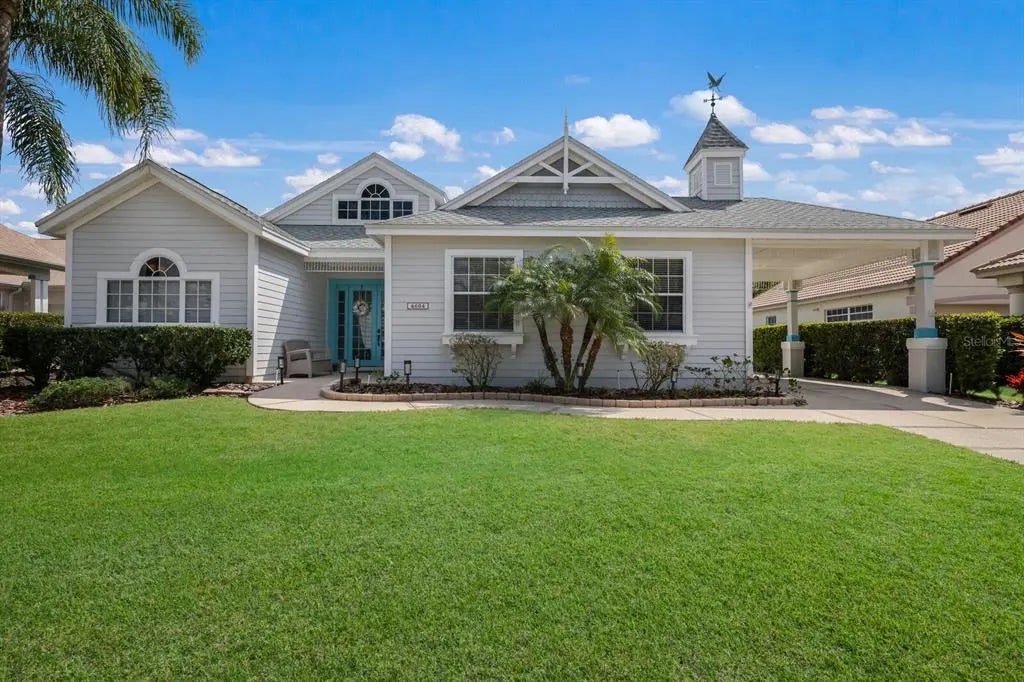 Move-in ready four-bedroom waterfront pool home: The Inlets at Riverdale welcomes you to a beautiful 2,416 sqft, four bedroom, three bath, two car garage on a fresh waterfront canal. When arriving at your future home, you will be drawn in by the charm of the Key West style build & professional landscaping providing welcoming curb appeal. Step inside through the double glass door entryway, revealing a bright and spacious open-concept floor plan with high ceilings, & plenty of windows for natural light. The centrally located kitchen offers 42" cabinets with plenty of storage, Corian countertops, stainless steel appliances, tile backsplash, an inviting breakfast bar, a spacious pantry cabinet, and a bonus eat-in dining space. The floor plan offers a split bedroom concept for privacy and convenience. The primary suite is spacious and bright, featuring high ceilings, an en suite bathroom, his & hers custom walk-in closets, and views from the primary bedroom overlooking your peaceful pool/canal view. Your en suite offers tile flooring, a large walk-in shower, a relaxing soaking tub, split vanities with a make-up area, and a water closet for privacy and convenience. You will find a spacious guest suite in the back of the home with a separate backyard entry, a large bathroom, dual closets, and wood flooring. In addition, this home offers two more bedrooms, providing plenty of space for all, with new plush carpeting. The interior laundry room, for your convenience, features floor-to-ceiling shelving/cabinets with a full-sized washer and dryer. The two-car garage provides plenty of space for cars, toys, storage, and more! Dual sliding glass door entryways lead to your outdoor living space and is truly what Florida living is all about! The fully screened-in lanai encloses the heated pool and overflow spa with plenty of covered patio space for entertaining. It overlooks the freshwater canal where you can conveniently park your boat! Not to mention, your backyard offers plenty of space for outdoor activities! All the home has to offer, plus a fantastic location! The Inlets Waterfront Community provides a private boat ramp, a playground, and tennis. Enjoy the convenience of being Close to the Beaches, Downtown Bradenton, The UTC Mall, I-75, and a quick drive to Downtown Sarasota or St Pete, making this an Ideal Blend of Comfort and Coastal Charm!