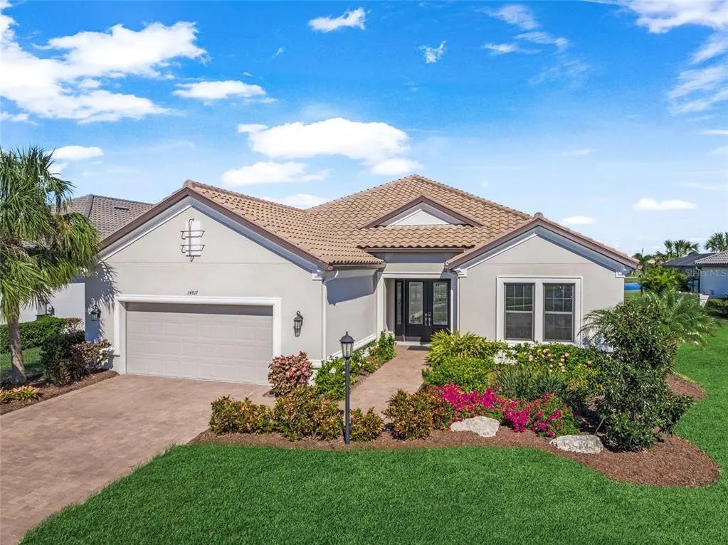 Enjoy breathtaking golf course views and an incredible outdoor space, in this fully loaded 3 Bedroom 3 Bath + Den Pallazio Floor Plan in the coveted Azario at Esplanade in Lakewood Ranch. Complete with a DEEDED GOLF MEMBERSHIP, and perfectly appointed with the most stunning of upgrades., there is nothing this home does not provide. Enjoy your dream outdoor living space with your 31.5" length gas-heated pool and spa, an oversized and extended covered lanai space, panoramic screen for unobstructed views of the golf course and water, 2 sets of pocket sliding glass doors making the indoor/outdoor life easy and enjoyable, an outdoor kitchen, and shellstone pavers. The Gourmet Kitchen features GE Profile stainless appliances, GE Monogram wine refrigerator, range hood, gas cooktop, 42' upper cabinets, soft close and dovetail construction drawers and cabinets, under cabinet lighting, glass tile backsplash, and an oversized island. Other features included in the home: Designer lighting throughout, quartz countertops, custom California closets in primary bedroom, storage, and garage, Lutron automated interior shades on all windows, 8-foot interior doors, tray ceilings, crown molding, oversized shower with rain shower head in primary bath, tankless gas water heater, tandem garage with plenty of custom storage closets, and Nautilus pull down hurricane shutters on all windows except the front which is hurricane impact glass. AZARIO AT ESPLANADE: This community offers the ultimate in privacy and exclusivity, yet you don’t need to leave the gates in order to enjoy a culinary dining experience, casual poolside drinks, or any of the numerous social and active amenities Azario has to offer. Esplanade at Azario is a gated community centered around resort-style amenities, golf, wellness programs and concierge services. *** COMMUNITY FEATURES: Lawn Maintenance, 18-Hole Championship Golf Course, Pro Shop & Bunker Bar, Aqua Driving Range, Full-Time Activities Director, Resort-Style Pool & Bahama Bar, Spa/Wellness Center, Culinary Center w/ Teaching Kitchen, Bahama Car, State-of-the-Art Fitness Center, Sports Courts, Clubhouse, 16 Pickleball Courts, 6 Har-Tru Tennis, Bocce Ball, Flex Space for Gaming, Meetings & Activity Center, Walking Trails, Dog Park, and a Satellite Pool right down the street.