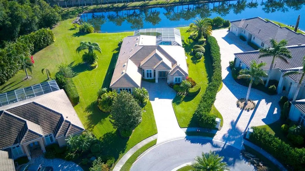 LOCATION, PRIVACY, LOW HOA FEES AND NO CDD FEES! This home, in the gated community of Rosedale Golf and Tennis Club, is beautifully situated on nearly a 1/2-acre pristine homesite that boasts a fabulous lake view (over 200 ft. of lake frontage) on a cul-de-sac street! This Vogue V floorplan is spacious, neutral and is certainly move-in ready with 3 bedrooms, 3 updated baths, an office/den, living room, family room and formal dining room with 12 ft. ceilings. Ceramic tile throughout all main living areas and the kitchen features stainless steel appliances, granite countertops, center island and a reverse osmosis water filtration system. There are two new variable speed A/C systems zoned to serve the living area and master suite. Special features include a central vacuum system, decorative fans & light fixtures and an in-wall pest control system. The oversized garage has a whole house generator with a transfer switch, a 240 VAC outlet for EV charging and plenty of overhead storage. A deep well provides water to the irrigation system, which is a substantial money saver. The roof has been sealed with a special Uniflex coating. Step out onto the huge lanai with a lap/sport pool, above ground spa and picturesque fountain. The Master HOA fee includes high speed internet, cable and 2 gate houses that are manned 24/7. Rosedale also offers a full-service clubhouse, social activities, tennis, state-of-the-art fitness center, a Jr. Olympic heated pool and championship golf course. All social and recreational memberships are optional! Rosedale is conveniently located near great restaurants, excellent shopping and world-class beaches. This is the community; this is the home! Come and see it today and start enjoying Florida living at its finest!