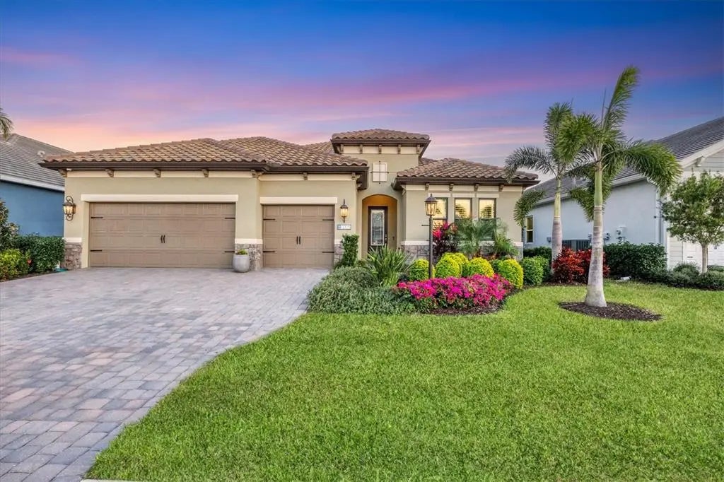 Feast your eyes on this one of a kind, ''Silver Sky II '' custom pebble surface salt water heated pool home with a luxurious primary bedroom, one ensuite, 2 guest bedrooms, den/study, large 3-car garage AND 4 bathrooms which includes a cabana bath! The grand foyer with its over eleven foot tall ceilings, sets the stage as you focus on the oversized, open spaces enhanced by the super private rear conservation preserve! Rest assured your new home is built to the most stringent building codes with its concrete block construction, durable concrete tile roof, HURRICANE IMPACT glass throughout, designed to withstand storms while contributing to lower insurance rates and enhanced energy efficiency. Additionally, energy efficiency is further optimized with radiant barrier panels in the attic. This amazing ''smart home'' allows you to operate your thermostat, security system, front door, garage doors AND pool system all from your smart device! Additional features include: Paver driveway, ''Just Water'' whole home water softener system, gutter system throughout the entire roof line, hand laid front accent stones, plantation shutters window treatments throughout, ''ClosetTec'' custom cabinetry in every closet area, 10' high ceilings throughout with multiple tray ceilings, premium ceramic tile throughout (NO CARPET), LED recessed lighting, 8-foot-tall interior/exterior doors, 5 1/4" deco baseboards, crown molding and state of the art recessed ''Klipsch'' surround sound speakers! The chef inspired kitchen boasts a 5-burner gas stove top with stainless steel exhaust hood, herringbone laid glass backsplash, a massive island with breakfast bar and decorative ''Timberlake'' soft close cabinetry with level 4 deco panels and useful pullout shelving, a full suite of premium GE stainless steel appliances, LED undermount lighting to complement the high level quartz counters PLUS a large walk-in pantry with one off shelving. This multi use oversized laundry room not only has a large linen closet but custom cabinetry with crown molding accent, pull out shelving as well as quartz countertop with porcelain tile backsplash and a covenant wash sink. Your new luxurious primary bathroom boasts two walk-in closets with custom cabinetry for easy clothing storage, two separate vanities with custom pullout drawers and high level quartz counters, water-closet & large walk-in shower with single raised window that provides an abundance of natural sunlight. The garage is a handyman's DREAM with its extensive slatwall panels allowing effortless tool organizing, super useful heavy duty cabinets for convenient storage, a utility sink and epoxy flake flooring! Step outside to your paver rich lanai and you will be amazed at your new pebble-surfaced salt water heated pool with its calming water feature, super vibrant LED lighting on pool cage, builder grade gas stub and an abundance of deck space, perfect for soaking up rays on a sunny day which makes this a true Floridians relaxation location. Indigo is a well manicured, maintenance free, gated community that features a full time on-site manager as well as a full time activities director that manages an extensive calendar of activities. You can also expect sidewalks on both sides of the street, resort style heated community pool/spa at the clubhouse where you will find 5 cabanas with an abundance of seating, 4 pickleball courts, 2 bocce ball courts, 24-hour exercise gym, meeting room/banquet room and playground.''