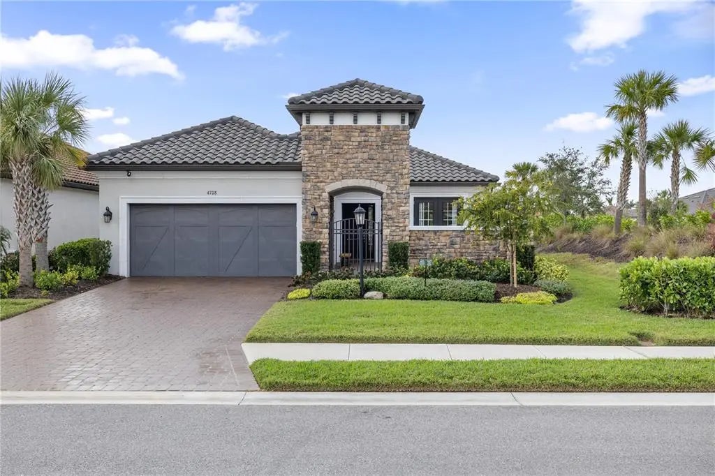Experience unparalleled elegance and resort-style living in the heart of Lakewood Ranch. This stunning Farnese model, built in 2021, showcases over $100K in premium upgrades, offering refined comfort and world-class amenities. A rare architectural gem, this home features a private gated entry leading to a beautifully designed stone courtyard, perfect for entertaining or peaceful relaxation. A custom metal gate and graceful stone pillars arching over the entryway create a grand first impression, setting the stage for the luxury within. Inside, luxury vinyl plank flooring, tray ceilings, crown molding, and a striking floor-to-ceiling accent wall enhance the home’s sophisticated ambiance. The chef’s kitchen seamlessly blends style and functionality, featuring quartz countertops, upgraded shaker cabinets with whisper-close drawers, and a handcrafted Zellige tile backsplash. The open-concept layout flows effortlessly into the spacious living area, where eight-foot pocket sliding glass doors extend to the screened lanai, complete with Ziptech automatic shades for added privacy and shade. The outdoor space is a true entertainer’s dream, featuring a fully equipped summer kitchen with upgraded marble countertops, ideal for alfresco dining. The professionally landscaped, fully fenced backyard provides a serene and private retreat, surrounded by lush greenery—perfect for embracing the Florida lifestyle. The owner’s suite is a tranquil retreat, featuring a frameless glass shower door, handheld faucet, and spa-like finishes. Additional highlights include a den with double French doors, offering a versatile space for work or relaxation. Retractable screens at the front door allow fresh air to circulate while keeping pests out. Custom blinds, all-new RH and Rejuvenation lighting and hardware, and a Ring security system add further style, security, and convenience. A four-foot extended garage with epoxy flooring and a radiant barrier in the attic enhances space and energy efficiency. A remodeled powder bath and exterior French doors leading from the courtyard to the third bedroom add thoughtful design and accessibility. Azario at Esplanade offers an exceptional resort-style lifestyle with an 18-hole championship golf course, a Bahama Bar, and three fine dining experiences, including The Barrel House Bistro, Olive and Vine, and Uva Tasting Room. Residents enjoy a state-of-the-art fitness center, spa, and wellness facilities, 16 pickleball courts, six Har-Tru tennis courts, bocce ball courts, scenic walking trails, a dedicated dog park, and a vibrant community led by a full-time activities director. This extraordinary home is the perfect blend of luxury, style, and comfort. Schedule your private tour today and experience exceptional living in Lakewood Ranch’s premier golf community. THIS PROPERTY QUALIFIES FOR A 1% LENDER INCENTIVE IF USING THE PREFERRED LENDER. INQUIRE FOR MORE DETAILS