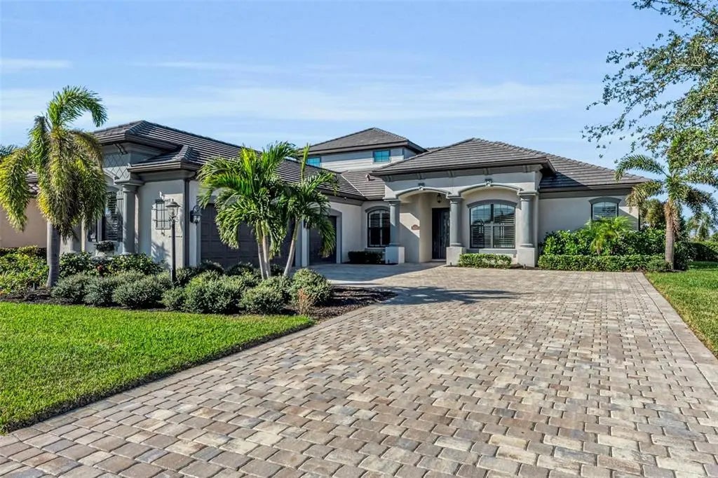Sophistication and serenity converge on this 3,025-square-foot estate home in Lakewood National Golf Club offered turnkey furnished. Tastefully upgraded throughout, this 2021-built home offers 3 bedrooms plus a den that also serves as a 4th bedroom and 2.5 baths downstairs plus a large bonus room upstairs that includes a full bathroom, wet bar with built-in upper and lower cabinets, wine refrigerator and portable Murphy bed to accommodate additional guests. Highlighting the list of upgrades are a 2022 Generac 18KW whole-house generator, a FlightScope golf simulator with large projection hitting screen and overhead projector, and a 2020 6-seat EZ Go golf cart. A few key features inside the home you'll love are the upgraded quartz countertops throughout the home with a waterfall edge in the kitchen island, reglazed kitchen cabinets, stainless steel appliances that include a new (2024) black stainless French door refrigerator, gas cooktop, breakfast nook that includes a wine refrigerator in the extended built-in kitchen buffet, custom feature wall in the living room with an electric fireplace and custom lighted shelving, crown molding throughout, coffered ceilings in the living and dining room, custom paint throughout and an upgraded guest bath that rivals any custom home. The window treatments in this exquisite home could be a star all on their own and include the perfect combination of plantation shutters, blackout shades and custom drapery to give the home an elevated impression. Outside the home, you'll love the oversized west-facing lanai with Italian porcelain tile deck, glass tiled 16x36 saltwater pool with built-in steps, table and sun deck with loungers, 7-foot hot tub, multi-colored lighting package and 2 pool heaters for quick heating and economical temperature control, plus an electric roll down screen. All of this, plus owners in Lakewood National Golf Club enjoy deeded golf membership giving owners the ability to play 36 holes of championship golf year-round. The Commander course at Lakewood National Golf Club was named No. 1 Golfers’ Choice and No. 1 Top Course in Florida by Golf Advisor. Lakewood National Golf Club offers gated, maintenance-free living with extraordinary amenities that include 36 holes of Arnold Palmer-designed golf courses, a zero-entry heated pool with cascading waterfalls and lap lanes, poolside tiki bar and café, fitness center with group exercise classes, on-site full-service spa, eight lighted Har-Tru tennis courts, bocce, pickleball, several satellite pools, and a stunning 28,000-square-foot clubhouse which offers fine and casual dining, an expansive bar and lounge, men’s and ladies lounges and locker rooms, conference and meeting space, a full-time lifestyle director that keeps residents’ social life fun and active with trivia night, karaoke night, live concerts on the green, extravagant holiday parties, wine-tasting dinners and more. Lakewood National Golf Club hosts the annual Korn Ferry Tour’s LECOM Suncoast Classic.