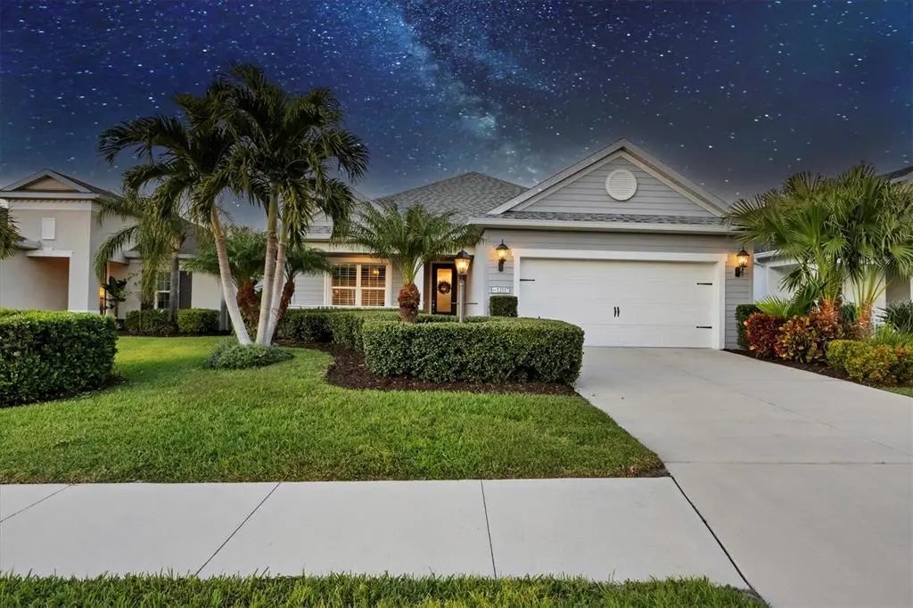 NO CDD FEE! Welcome to luxury living in the heart of Lakewood Ranch, Florida! This magnificent ''Starlight'' floorplan with its custom pebble surface salt water heated POOL and SPA boasts exquisite design and modern features, providing an idyllic blend of comfort and true Florida style living. Upon entering, you'll be greeted by the grandeur of this 3-bedroom, 2.5-bathroom residence, where every detail has been meticulously crafted. You will love how strategically placed this home is with its natural privacy along the back of the property line, mature palm trees, commercial grade gutters and a short walk to the amenity center! The three bedrooms AND flex room are generously sized, offering comfort and privacy. In addition to the two full bathrooms, a super convenient powder half bath showcases modern design and luxurious finishes that compliment this already stunning home. This amazing ''smart home'' is currently set up to allow remote operation of the ''Hayward'' pool equipment! The thermostat, front door and garage door can also be operated remotely once a hub is connected. Throughout this beautiful home you will find 5 1/4" deco baseboards, luxurious crown molding, custom built-ins and handcrafted woodwork features, plantation shutter window treatments, ceiling fans in every room, upgraded light fixtures plus LED recessed lighting, whole home ''Water Technologies'' water softener system, BRAND NEW air conditioning system installed in 2024, whole home surge protection with an upgraded electrical panel for hookup of a portable generator of your choice! You will also appreciate the cost savings AND peace of mind provided by being located in a desirable ''X'' floodzone and having integrated Storm Smart HURRICANE shades! The kitchen is equipped with stainless steel appliances, modern wood cabinets with under mount lighting which complement the high level quartz countertops and custom pullout racks for convenient storage, along with a graciously sized center island, making meal preparation a delight. Step outside to your paver rich lanai and you will be amazed at your custom pebble surface salt water heated pool AND spa, an abundance of deck space perfect for soaking up rays on a sunny day which makes this a true Floridians relaxation location! In addition to this amazing lanai oasis, there is an integrated motorized hurricane shade which allows you to leave all of your furniture safely in your covered area saving you the hassle of luggaging your furniture in the event there is an approaching storm. Your new 2-car garage showcases quality features, including the insulated HURRICANE IMPACT rated garage door, durable epoxy paint flooring, ample additional storage in the attic space and super convenient water tub as well! Located in a gated community, this residence provides a secure and tranquil environment for residents. This amenity rich neighborhood has a community pool, two dog parks, pickleball/tennis courts, playground as well as having sidewalks on both sides of the street. With it being a maintenance assist neighborhood, you can relax and enjoy the Florida sunshine in style, whether spending time by the pool or engaging in community events. Lakewood Ranch, known for its picturesque surroundings and vibrant community, offers an array of amenities, including shopping, dining, and cultural attractions. Experience the epitome of Florida living in this meticulously designed and thoughtfully appointed ''Neal'' built home.