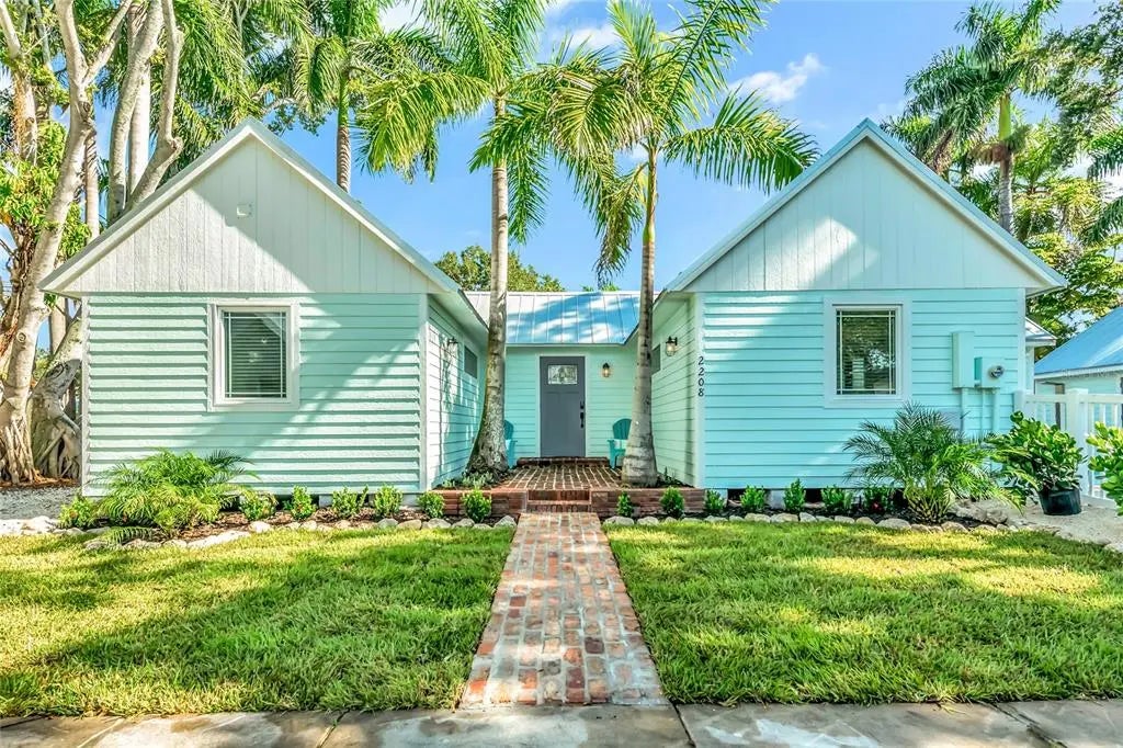 Welcome to Laughing Mermaid! This beautiful two bedroom and two bathroom house features an additional private guest studio perfect for multi-generational family vacations. The backyard is truly a slice of paradise, complete with a refreshing pool, a convenient outdoor shower, a BBQ grill, and comfortable seating options where you and your loved ones can soak up the beautiful Florida sunshine. You will immediately feel the stylish and sophisticated ambiance as you step inside. This 3 bedroom, 3 bath residence could be used as primary residence, vacation home or rental. The renovations consist of new footings, new exterior siding, new reclaimed vintage flooring from North Carolina, new case opening windows, metal roof, landscaping, interior shiplap and in-ground gas heated pool. No expense has been spared. Two-bedroom, two-bath main home with a casita guest studio apartment with separate entrance gives lots of options for a new buyer. You will love entertaining in your guests with the remodeled kitchen which includes stainless steel appliances, quartz counter tops, farmhouse sink, and an island with breakfast bar. Dining area envelopes a beautiful chandelier and built-in banquette. The cozy primary bedroom will delight you with a wood-burning fireplace, walk-in closet, En-suite with shower, beautifully tiled, quartz countertops and dual sinks. Guest bedroom, sleeps three comfortably too! Located in the historic area of Bradenton in a charming neighborhood that is close to The Village of the Arts, Riverwalk of Bradenton, restaurants, LECOM, IMG Academy, and of course, our award-winning beaches of Anna Maria Island.
