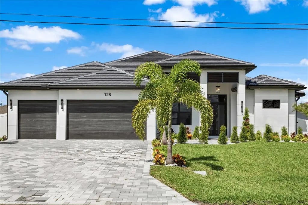 ***MOTIVATED SELLER offering SCREENED LANAI INSTALLATION or INTEREST RATE BUY-DOWN - NO FLOOD INSURANCE REQUIRED, PAID ASSESSMENTS & includes 1-YEAR BUILDER WARRANTY!*** THIS HOME EXUDES CHARACTER, featuring ELEGANT PALETTE of BLUE & BLACK and serene NATURAL BEIGE WOOD TONE & WHITE accents! GORGEOUS NEWLY CONSTRUCTED HOME invites you to EMBRACE SWFL LIFESTYLE! Desirable western rear exposure, backyard provides more sun exposure & outdoor time w/ delightful sunsets! BRIGHT & SPACIOUS 2,420 sq ft floorplan w/ SPAIN POLISHED PORCELAIN TILE MARBLE LOOK THROUGHOUT, encompassing 3 BEDS & DEN (make it 4th bed) & 3.5 BATHS, EXQUISITE lighting & modern fans. FRONT COLUMN PORCH w/ BAHAMA SHUTTERS & striking FLAT WOODEN CEILING led to stunning FROSTED DOUBLE FRONT DOORS that open into breathtaking FOYER. FOYER invites you to admire BLUE PANELING, lamps & CHANDELIER. LIVING ROOM w/ 16-ft COVE CEILING adorned w/ recessed LIGHTED WOOD is SPECTACULAR! ELECTRIC FIREPLACE sets mood, while 75-inch TV takes CENTER STAGE on BLUE & GOLD FEATURED WALL, perfect for ENTERTAINMENT & UNWIDING. GOURMET KITCHEN displays EXQUISITE LAMP & CEILING SPOTLIGHTS. TOP-OF-THE-LINE custom CABINETRY w/ under cabinets lighting, QUARTZ COUNTERTOPS & FULL BACKSPLASH. LARGE SINK w/ sleek black faucet & WATERFALL kitchen ISLAND w/ STORAGE & SEATING AREA. Luxury appliances: wall oven, island microwave, induction cooktop w/ pot filler, panel-ready integrated dishwasher & BUILT-IN REFRIGERATOR & FREEZER. Custom GLASS-DOORED PANTRY & STORAGE CABINETS enhance the elegance of this STUNNING KITCHEN, providing EXTRA SPACE for STORAGE & ORGANIZATION. Sizeable DINING ROOM is ideal for MEMORABLE FORMAL DINING experiences, featuring ATTRACTIVE CHANDELIER, FLAT WOODEN CEILING w/ LED light track, stackable doors that open to the LANAI and BIG PICTURE WINDOW overlooking POOL AREA. Retreat to SPACIOUS MASTER BEDROOM, complete w/ HIS and HER WALK-IN CLOSETS w/ custom built lighted cabinetry. MASTER BATHROOM is a sanctuary of luxury, featuring TILED WALKTHROUGH SHOWER w/ RAINFALL, HEAD & HANDHELD SHOWER HEADS, LUXURIOUS STANDALONE TUB w/ handheld shower head & CUSTOM FLOATING VANITIES w/ undercabinet lights, wall mounted faucets & QUARTZ COUNTERTOP. ELECTRIC TOILETS w/ BIDET functions add REFINEMENT & INDULGENCE. SPLIT FLOORPLAN ensures PRIVACY & CONVENIENCE, w/ LARGE 2nd MASTER BEDROOM offering an ENSUITE BATHROOM, along w/ a spacious GUEST BEDROOM and HALL BATHROOM & LINEN CLOSET w/ custom cabinetry. Step outside to discover your own PRIVATE OASIS, complete w/ POOL & lush landscaping! OUTDOOR KITCHEN features BUILT-IN GAS GRILL w/ HOOD VENT, mini-refrigerator, storage & large commercial sink, ideal for OUTDOOR DINING! Expansive lanai features FLAT WOODEN CEILING & offers ample space for LOUNGING & ENTERTAINING ensuring MEMORABLE GATHERINGS. Additional features include well-equipped laundry room w/ laundry tub & built-in cabinets for GE washer & dryer, 3-CAR GARAGE, TILE ROOF, FENCED PROPERTY & PAID ASSESSMENTS!