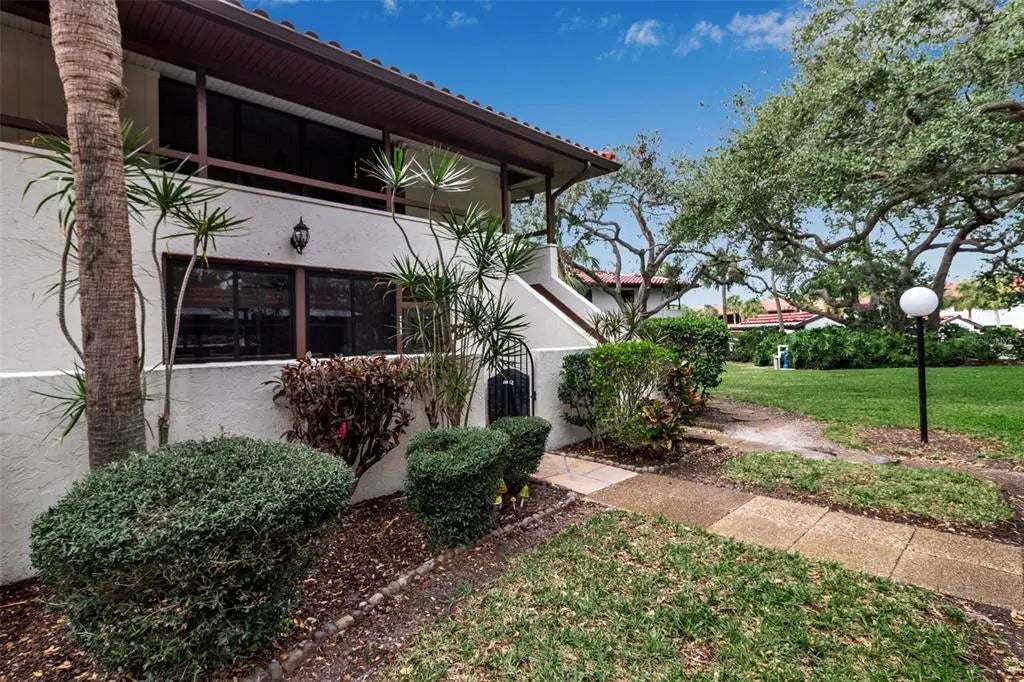 Valencia Gem! Get ready to fall in love with this pristine and gorgeous 2bd/2ba ground floor,end unit condo in Valencia Gardens. From the moment you enter the front courtyard you will feel the pride of ownership here by the way everything is so prisitne. First you enter the front glass enclosed lanai offering indoor laundry room and separate storage room and once you enter the condo itself you will be swept away by the beautiful and decorative tile flooring, well appointed and gorgeous kitchen, open living room and dining area providing lots of natural light from the end unit windows and both the primary bedroom and guest suite offers updated bathrooms and lots of closet space. The back glass enclosed lanai provides a serene and lush landscaped view of the pool and hot tub. This condo also boasts a carport, a brand new roof that was paid by the seller in 2024, new electric panel in 2024, A/C 2024, tankless water heater 2015, appliances and washer and dryer all approximately 8-10 years old. Look no further for the perfect condo to call your new home or winter retreat! Valencia is conveniently located in the IMG/El Conquistador Community making it convenient to all the wonderful things both Bradenton and Sarasota have to offer in way of shopping, dining, SRQ Airport, theatre and the arts. IMG Golf and Country Club is located up the street and offers public golf and dining. Just a short drive to Anna Maria Island and the gorgeous gulf beaches found there. Hurry, this is an amazing price for all this condo has to offer and it won't last long!