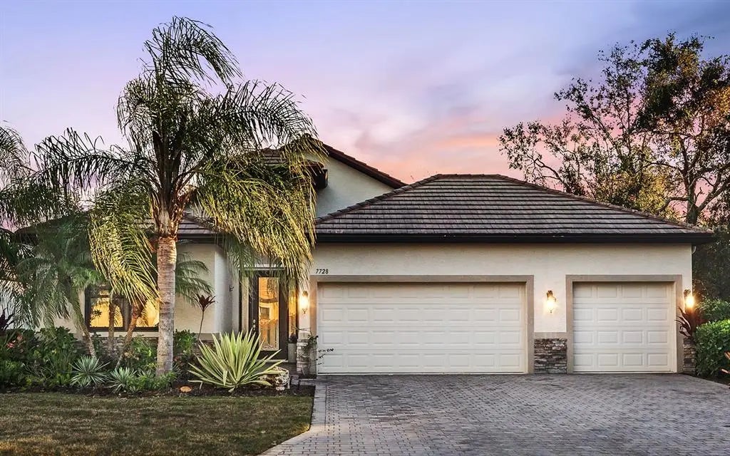 Step into a world of privacy, luxury and convenience in this stunning Medallion Homes residence, nestled within the coveted gated community of Riva Trace. Come home every day to a peaceful sanctuary surrounded by lush greenbelt views on two sides. This impeccably-maintained home boasts 1,903 square feet of thoughtfully designed space featuring three bedrooms and two full baths. Elegant tray ceilings with soft, ambient cove lighting add warmth and sophistication to the open living area. Quality shines through every detail – from the gleaming engineered hardwood floors and soaring ceilings to the brand new A/C and impact-resistant windows. The three-car garage offers ample space for vehicles and storage, a rare find in this price range. Living in Riva Trace means enjoying the perks of a maintenance-free lifestyle in a small community designed with privacy and curb appeal in mind. Community amenities include a scenic community dock, a canoe/kayak launch on the Braden River, and a nature trail that wind through Florida's native landscape. The location is ideal. You’re just minutes from the premier shopping and dining experiences at University Town Center, where upscale boutiques, gourmet restaurants and entertainment options abound. Golf enthusiasts will love being close to University Park, Meadows, and Palm Aire Golf Courses. Nearby Lakewood Ranch Medical Center and Sarasota-Bradenton International Airport ensure your healthcare and travel needs are always within reach. This is more than a home, it’s a lifestyle upgrade. Schedule your private tour today and discover why this hidden gem in Riva Trace is the perfect place to call home.