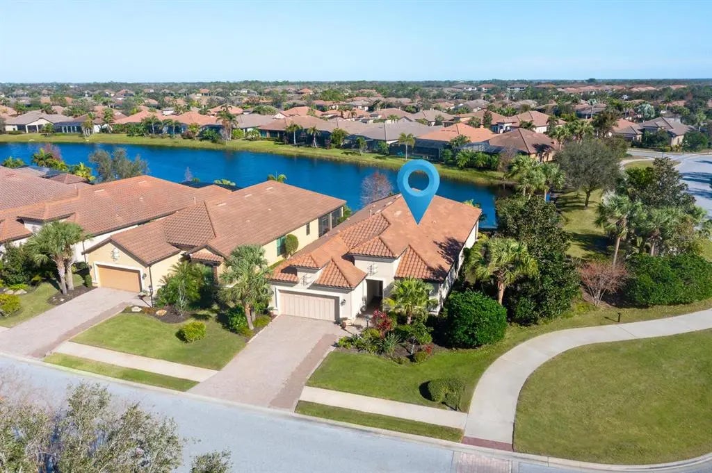 Nestled in the highly sought-after Esplanade Golf & Country Club this immaculate 3 bedroom + den, 3 bathroom Lazio floorplan offers the perfect blend of elegance, comfort, and low-maintenance living. This mint condition, original owner home boasts a neutral palette, a thoughtfully designed split-floorplan, and an abundance of upgrades to suit today’s buyers. The spacious open-concept layout seamlessly connects the kitchen, living, and dining areas to the 22 x 16 expanded covered patio, complete with an outdoor kitchen & wet bar, ELECTRIC HURRICANE SCREEN SHADES BY STORM CATHCHER, and serene lake views - ideal for effortless indoor-outdoor living and entertaining. The luxurious primary suite also enjoys lake views and features a deluxe spa-like ensuite bath with a jetted soaking tub, walk-in shower, dual vanities with a makeup counter, a private water closet, and a custom-designed walk-in closet. Two additional bedrooms, one en-suite and a den / bonus area currently being used as a formal dining room provide ample space for family, friends and flexibility. The generous laundry room with wash basin, countertops & built-in cabinetry is tucked away off the hallway and is a room all to itself. Additional highlights include IMPACT WINDOWS and A WHOLE HOUSE GENERATOR for year-round peace of mind. Residents of Esplanade enjoy resort-style amenities, including a gorgeous clubhouse with a variety of dining options, heated pools & spas, resistance pool, wellness center with full service spa and salon, fitness center, tennis courts, dog park, playground, bocce, and pickleball and a variety of social activities. While golf membership is not required in this section, residents still have the option to play the course for a nominal fee. Conveniently located across from the amenities center and close to both the main guard gate and the residents only gate this home enjoys easy access to the myriad of activities, extensive shopping and dining on Lakewood Ranch and in the neighboring communities. Don’t miss the opportunity to experience the best of luxury, convenience, and Florida living in this exceptional home!