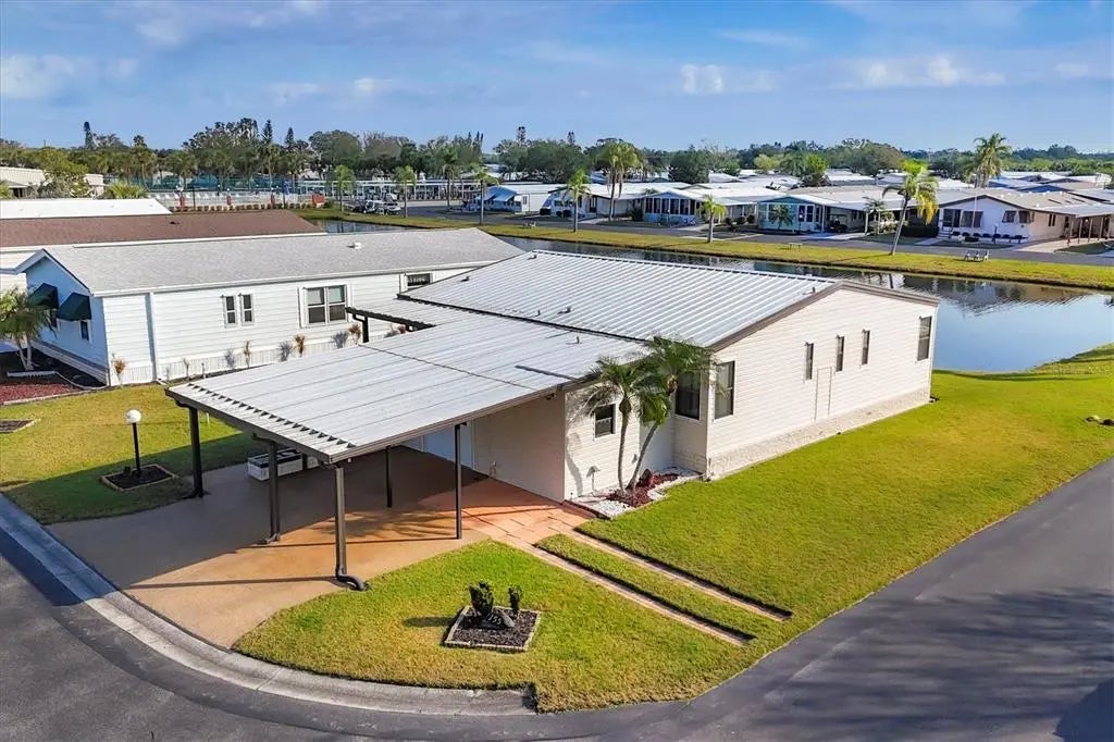 NEW IMPROVED PRICE!! Charming Triple Wide with Water View on a Corner Lot in Gold Tree 55+ Community! Discover all the potential of this home, perfectly situated on one of the highest corner lots with great curb appeal and a serene water view in the highly sought-after Gold Tree 55+ community—where there’s NO LOT RENT and LOW HOA! Priced to allow you to customize and update to your liking, this home features 2 spacious bedrooms with walk-in closets, a durable metal roof, hurricane shutters, and a bright sunroom to enjoy the views. With plenty of storage, including an attached shed and two extra storage rooms, plus a 2-car carport, this home offers both comfort and convenience. Gold Tree is a resident-owned 55+ Co-Op community of 295 homes, where you own the shares with your purchase. Enjoy the perks of low monthly fees covering cable, internet, water, trash, lawn care, and access to a variety of resort-style amenities, including a heated pool, hot tub, fitness center, tennis courts, shuffleboard, a library, and a 15,000-square-foot clubhouse! Small pets are welcome, adding to the friendly and vibrant atmosphere. Conveniently located near shopping, dining, entertainment, and just 30 minutes from beautiful beaches, this home offers the perfect blend of relaxation and activity. Don’t miss your chance to make this home your own—schedule your showing today!