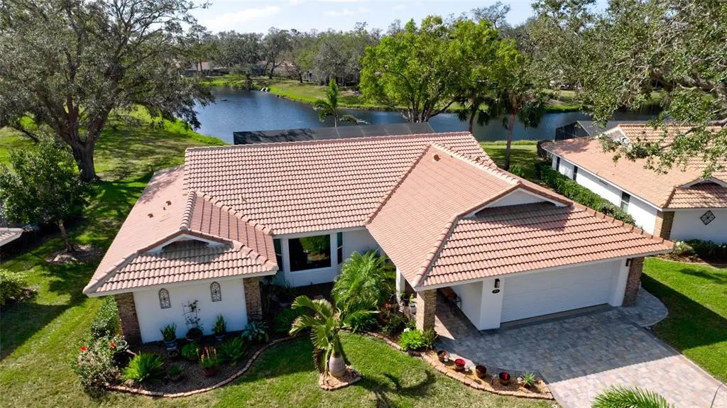 Beautifully landscaped and care for Lakeview home in Garden Lakes, a 55+ community. Screened pool with southern exposure to lake. This 3-bedroom 2 bath home features luxury vinyl flooring and updated kitchen and master bath with just over 2,000 sg/ft of living space. The 3rd bedroom has been converted into an office with built in desk and custom book shelve for library. Roof replaced in 2023. Hurricane windows and sliding glass doors in 2021. Hurricane rated garage door with battery backup 2022 with the ability to control from your phone. Master bath updated in 2020. Kitchen appliances replaced in 2021.Pool area featured cool deck and restored and painted pool cage with new screens and stainless-steel screws for strength and durability 2024. Pool features self-cleaning pop-up system, variable speed pump and heater. Popcorn ceiling have been removed except for master bedroom. Whole home carbon filter for clean water. A/C features a bio shield UV Light and wi-fi control thermostat to monitor anywhere you want. 2 car garage with High glass Poly aspartic polyurea coating on garage floor with lifetime warranty 2021. Paver stone driveway with walkway to screened pool 2020.Wall mounted retractable garden hose reels. Portable gas hybrid propane generator with transfer switch. Newer hot water heater. freshly painted in 2024.