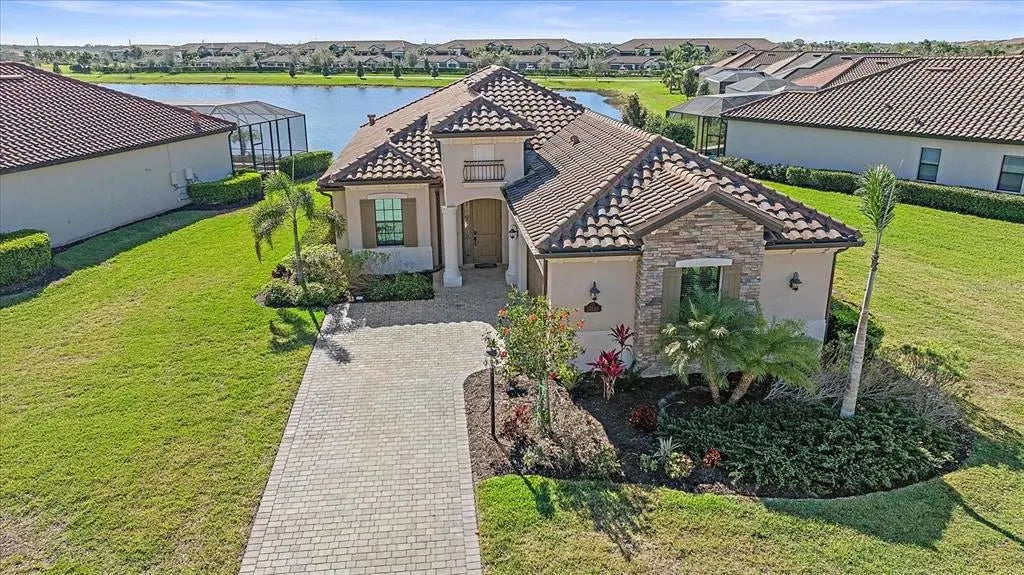 "This life is not a dress Rehearsal" so start living your BEST LIFE TODAY in this gorgeous LAKEFRONT home in the "RESORT STYLE" COMMUNITY ofLakewood National, where luxury meets tranquility! Nestled within one of Bradenton's most sought-after golf communities, this masterfully designed residence offers breathtaking panoramic water views and an unparalleled blend of sophistication and comfort. Step inside to discover OPEN CONCEPT living spaces, tall ceilings, and designer finishes throughout. The kitchen is a masterpiece, featuring top-of-the-line stainless steel appliances, granite countertops and a spacious island perfect for entertaining! The grand living area boasts lots of windows allowing natural light to pour in and offering seamless indoor-outdoor living. The primary suite is a private retreat, complete with a spa-like ensuite bathroom, dual vanities, a soaking tub, and a walk-in shower. Additional guest suites provide ample space for family and friends, each designed with luxury and comfort in mind. A dedicated office and bonus room offer flexibility to accommodate a variety of lifestyle needs or 3rd Bedroom. Step outside into your private outdoor oasis, where an expansive covered lanai, RESORT-STYLE POOL await! (OUTSIDE POOL BATH so you don't need to go inside) The fully equipped OUTDOOR KITCHEN and great for outdoor BBQs and entertaining! The TRANQUIL LAKE VIEWS create the perfect backdrop for unforgettable sunsets. Situated within the GATED, golf-course community of Lakewood National, this home offers exclusive access to WORLD-CLASS AMMENITIES, including a championship golf course, state-of-the-art fitness center, resort-style pools, tennis courts, and an upscale clubhouse with dining. Just don't tell your Relatives and friends up North or you may never get rid of them! This is luxury Florida living at its finest rare opportunity to own a lakefront sanctuary in one of Bradenton's most prestigious communities. Located close to shopping and only 20 miles to Downtown Sarasota and only the beautiful Gulf beaches are only 25 minutes. Don't miss your opportunity to live on vacation NOW!