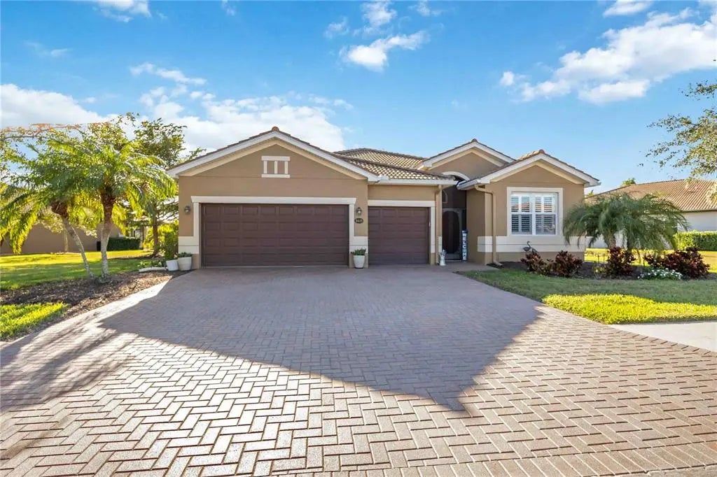 Experience luxury living in this exquisite 4-bedroom, 3-bathroom home located in the sought after River Strand Golf and Country Club. Admire breathtaking sunsets over the pool and lake from your own private sanctuary. Step inside to discover a beautifully designed space featuring luxury vinyl flooring, crown molding, and elegant plantation shutters. The open floor plan seamlessly connects indoor and outdoor living spaces, offering stunning views throughout. Unwind in the tranquil primary bedroom suite complete with a custom closet for all your organizational needs. Whether you're hosting gatherings or enjoying quiet moments, this home effortlessly combines luxury and practicality. Nestled in the gated resort community of River Strand, residents enjoy access to a world-class 27-hole golf course, clubhouse dining, resort-style pools, tennis courts, fitness rooms, and more. With easy access to amenities and the Gulf Coast beaches, this home offers the perfect balance of convenience and relaxation. Embrace a life of elegance and serenity at River Strand Golf and Country Club – where every moment is designed to create lasting memories. The home is turnkey furnished as a convenience on a separate purchase order.