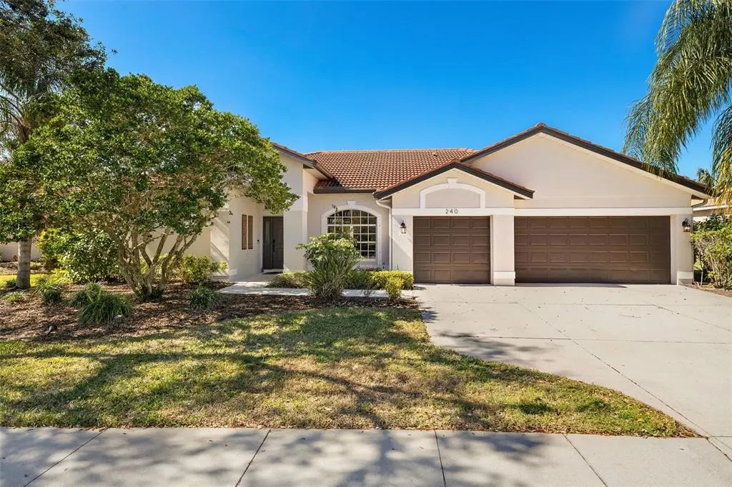Welcome to your dream home! This stunning ranch-style home boasts a thoughtfully designed split floor plan, providing privacy and space for the entire family. Upon entering, you'll be greeted by a spacious bonus family room with large windows that frame views of the expansive patio, perfect for relaxing and entertaining. Step outside to the serene patio area, complete with ceiling fans for comfort, ample shade, and a sparkling swimming pool with an enclosed lanai for year-round enjoyment. The master suite is a true retreat, offering generous space and direct access to the pool area. The master bathroom features a luxurious double vanity, a deep soaker tub, and a beautifully tiled walk-in shower. Whether you're unwinding after a long day or getting ready for the next, this bathroom has it all. The heart of the home is the enormous kitchen, designed with both functionality and style in mind. It includes a large pull-up bar island, abundant cabinet space, a sizable pantry, and stunning granite countertops. A gas cooktop, wine fridge, and ice maker make this kitchen a chef’s dream, while the breakfast nook offers a cozy spot to enjoy your morning coffee. The kitchen overlooks the spacious family room, where a vaulted ceiling and a charming shiplap accent wall add character and warmth. Sliding doors open to the expansive patio, making indoor-outdoor living effortless. This side of the home also features three additional bedrooms and two well-appointed bathrooms, each with elegant tiled surround showers. For added convenience, the third bathroom is located just off the swimming pool, perfect for poolside use. With a large 3-stall garage, fully fenced yard, and an inground sprinkler system, this home provides all the space and amenities you need. Natural light pours in throughout the home, creating a bright and airy atmosphere. Located in a gated community with a private guard gate, this neighborhood offers a wealth of recreational areas, parks, and abundant wildlife, giving you a true sense of peace and privacy. You’ll also enjoy easy access to main roads, as well as shopping, dining, and world-class beaches just a short drive away. This is more than just a home – it's a lifestyle. Don't miss the opportunity to make this exquisite property yours!
