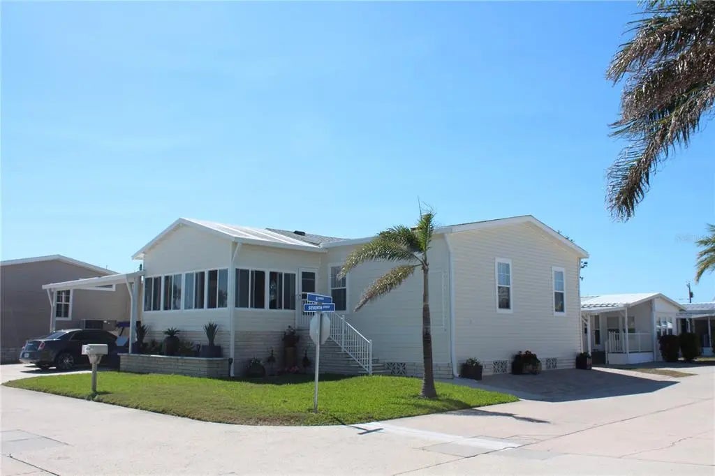 Only a block to Sarasota Bay! What a fabulous location to enjoy the vibrant colors of the sunset, mirror off the water just steps from this Turnkey Furnished Jacobson Home. Paradise Bay is a highly desirable 55+ community with 3 entrances off of Cortez Rd to make access a breeze. It is conveniently located just a mere 2 miles to the soft sandy beaches of Anna Maria Island. A fun community with plenty to do including the pickle ball courts next to the club house or a swim in the community pool. Go for a stroll or a Golf Cart tour to enjoy the neighborhood or rent a boat slip to dock your vessel for some fun on the bay. This home is elevated 5 feet and being custom, the current owner designed various areas throughout the interior and exterior of the home to make sure everything is tucked away & stored properly. Your new home appears larger than the already 2,391 sq ft under roof due to the open concept and not one but two lanais off of the side from the dining area being open air with composite flooring...maintenance free! Or the front enclosed lanai measuring 17.4 x 11.5 with sliding windows to enjoy the breeze. Beautiful accordion privacy window treatments compliment the room to block out the sun when necessary. Enter the home from this lanai from either staircase being greeted by a frosted glass entry door welcoming you into the adorable foyer. From there take notice of the open concept living room, dining area and kitchen with a large peninsular which can easily accommodate 3-4 barstools. Next, you'll notice the amount of counter space for food prep for all those guests that will be stopping by. Plus, an abundance of wood cabinets and separate pantry to compliment this spectacular kitchen. In addition, the walk in laurndry is conveniently located right off the kitchen and there's no shortage of natural light coming into this room either. As you head down the hall, you will first arrive at the hall bathroom adjacent to the guest bedroom. On the opposite side of the hall, you will find a generous size office/craft room/ exercise/flex room measuring 11.8 x 9.0. Further down to the end of the hall is your primary suite, with ample closet space and large bathroom with an extension of the vanity for a size appropriate makeup area to sit and relax as you're preparing for a night out or enjoying your morning coffee as you're leisurely getting ready to start your day. You should also take notice of the beautiful crown molding throughout. The carport area also includes a large storage room and a staircase up to your open-air lanai. This large corner lot offers plenty of natural light all the way around, beautiful pavers for an extra parking pad off to the side of your home and plenty of space for 2 cars under the carport on the opposite side of the home. The curb appeal is one of the nicest, with polished concrete and a beautiful sketch of a Manatee embossed into the design. Strolling around this home, the large planters add some colorful accents to brighten everything up. Paradise Bay is conveniently located near multiple airports, major freeways, sports, golf courses, parks and recreation and most certainly some fabulous shopping and restaurants.