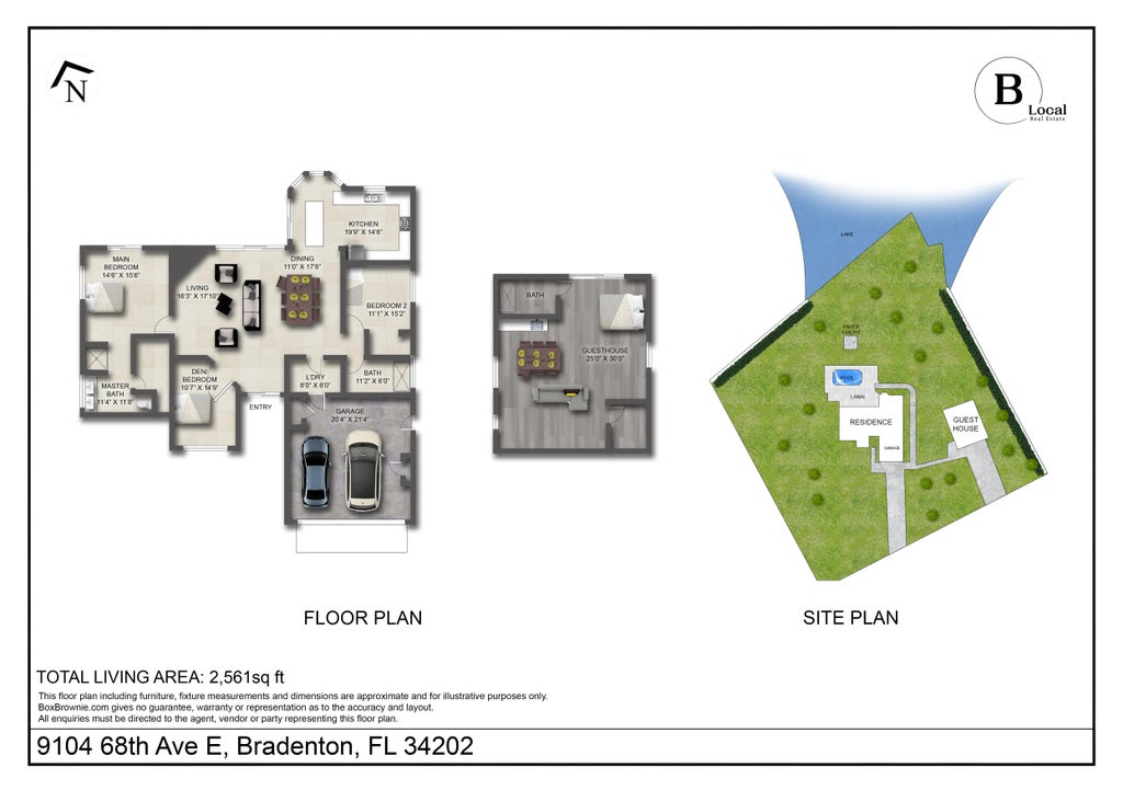 A Private Lakefront Family Retreat with Guest House on Over an Acre! Nestled in Braden Woods right outside Lakewood Ranch, the #1 master-planned community in the U.S., this 3-bedroom + den (or 4th bedroom), 3-bath home offers space, privacy, and modern comforts on over an acre of beautifully maintained land with large lake views. As you enter the screen entry and double glass doors you will see the open floorpan, which has been tastefully renovated with tile throughout the home. From the entry the open floor plan opens to a living/dining space overlooking a wood burning fireplace complete with a stacked stone wall. The main home expands upon attention to detail and finishes offering you either a two or three-bedroom/flex space, two full bathrooms within 1,800 sqft of living space overlooking the pool and picturesque lakefront backyard For those who loves to cook, this kitchen won't disappoint with updated white cabinetry and a beautiful glass tiled backsplash, granite countertops, a stainless designer hood complete with an induction stove top, convection microwave, built-in wall oven, and a large refrigerator perfect for both daily living and entertaining. The renovated primary suite showcases an updated bathroom with a seamless glass walk-in shower, dual vanity, and a huge walk-in closet complete with custom shelving and built-ins —perfect for keeping everything organized. The additional bedrooms and a versatile den provide plenty of room for the whole family. A rare find this home offers a separate 750+ sq. ft. detached guest house with an updated kitchenette and private bath—ideal for multi-generational living, guests, or a private home office. Completing the home you will step outside to your private backyard oasis with a covered cedar plank ceiling and screen resurfaced pool with updated tile and pavers invites you to cool off on warm Florida days. The St. Augustine grass and full sprinkler system make the expansive yard perfect to run and play, dogs to roam, or even to start your dream garden. Towering oak trees frame a picturesque lake view, creating the ideal setting for unwinding by your private fire pit under the stars. With all impact windows and sliding glass doors, a third nail roof addition for lower insurance costs, no CDD fees, and low HOA fees, this home is both beautiful and practical. Many features & upgrades to this home include new impact windows/doors (2015), high ceilings, crown molding, new custom light fixtures, new AC system (2021), freshly painted interior (2023) and exterior (2021), LED lighting added (2023), Gutters (2023), new washer/dryer (2022), new pool heater (2017), and the roof on both buildings were replaced in 2009 with a 3rd nail added in 2023.