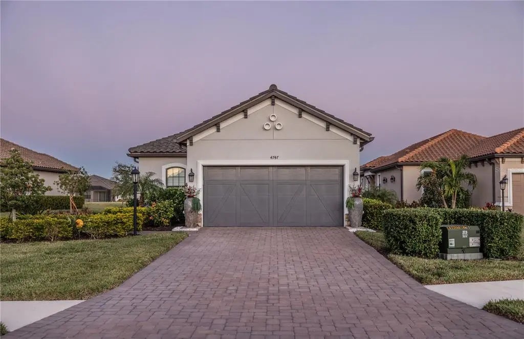 UPGRADES AND MORE UPGRADES to enjoy!! Experience resort-style living in this beautifully upgraded Roma model by Taylor Morrison, located in the highly sought-after gated community of Esplanade at Azario Lakewood Ranch. Meticulously maintained and lightly lived in during the winters, this stunning home is move-in ready, eliminating the long wait for new construction. Offering two bedrooms, a den, two bathrooms, and a spacious two-car garage, it blends elegance with everyday convenience. From the moment you arrive, the stone-accented façade, leaded glass front door, and sealed paver driveway make a striking impression. Inside, soaring 8-foot doors, designer tile flooring, and tray ceilings with crown molding create a warm and inviting ambiance. Upgraded dimmable lighting and elegant fixtures enhance the open-concept design, while plantation shutters and sheer pull-up blinds add style and functionality. The chef’s kitchen is a showpiece, featuring soft-close cabinetry with glass-front display doors, under-cabinet lighting, and quartz countertops. A farm sink complements the high-end appliances, including a six-burner gas range with griddle, convection microwave and oven, refrigerator with built-in hot water, and a dishwasher with a third rack. Lower cabinets with pull-out drawers and a custom-designed pantry offers exceptional storage. The primary suite is a serene retreat with a custom walk-in closet and a spa-like ensuite bath showcasing floor-to-ceiling tiled shower walls, a frameless glass door, custom cabinetry, and wire pull-out storage drawers. The guest suite is equally refined, offering upgraded tile flooring, a stylish ceiling fan, and an upgraded bathroom with a walk-in shower and designer finishes. The den, enclosed with wooden pocket doors, is perfect for work or relaxation with upgraded flooring and a programmable dimmable ceiling fan. A central vacuum system, smart wiring with an integrated security and fire system, and a high-end laundry room with a utility sink, overhead cabinets, and a front-load washer and gas dryer add to the home’s convenience. The two-car garage features durable epoxy flooring and an overhead rack for bonus storage that will suit all of your needs. Outside, the screened lanai provides a peaceful retreat with a natural gas hookup, overlooking breathtaking waterfront and golf course views. Unwind with a glass of wine in the evening or enjoy quality time with family and pets in the expansive backyard. Residents of Esplanade at Azario enjoy world-class amenities, including an 18-hole championship golf course, a state-of-the-art wellness center and spa, a fitness center, tennis and pickleball courts, resort-style pools, a coffee café, concierge services, and a 15,000-square-foot culinary center with an Italian eatery and pizza station. Conveniently located, the community offers easy access to grocery stores, popular shopping, and top-rated schools, all while being less than an hour from stunning sandy beaches and endless outdoor adventures. This immaculate home is a rare opportunity—schedule your private showing today before it's gone!