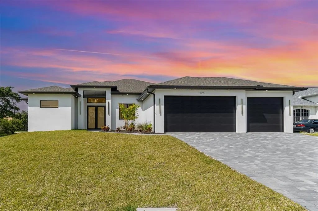 New construction with great attention to detail, quality, style and exquisite touches!!! This 4 bedroom, 3 full bathroom, 3 car garage waterfront pool home on a corner lot has everything. The custom boutique builder designed this home with all the bells and whistles. From the first impression and the curb appeal, this stylish home offers luxurious touches. Entering the home, you are welcomed from the foyer into an open living space and high tray ceilings. There are 4 foot plank, ceramic tiles throughout the flooring of the home, a fireplace wall with wood surround, and a stunning chefs’ kitchen with waterfall quartz island and views that showcase the pool and canal. The kitchen has 42’ wood cabinets with additional 15” glass front cabinets adorning the top. All high end LG stainless steel appliances, waterfall quartz counters with hideaway outlets and phone chargers. All windows, sliders and doors are impact resistant. Large primary bedroom offers 2 walk-in closets with custom built-ins and an attached, enormous custom bath. The spa-like bath has double sinks with quartz counters, LED anti-fog lighted mirrors and a shower that has to be seen to be believed. Also featured is the stand alone bathtub with custom tile surround. The home also has 3 additional bedrooms with custom built in closets. The two additional baths (one also being a pool bath) are also beautifully designed to satisfy the most discerning buyer. Even the laundry room has a quartz sink and is fully complemented with cabinets. Outside is an entertainer’s dream!! Beautiful pool with sun shelf, large covered seating area, custom built in outdoor kitchen with grill, sink and refrigerator, enormous poolside lounge area all encompassed by a caged lanai with large picture window screens overlooking your beautiful canal view. Welcome home to this modern space with clean lines and a location that offers both a peaceful canal and still convenient to shops and restaurants. Flood zone x- NO flood insurance needed.
