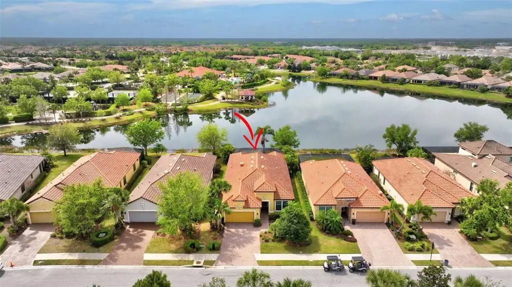 One or more photo(s) has been virtually staged. New flooring and interior paint. Nestled along the waterfront with breathtaking, unobstructed views, this exquisite 3 bedroom plus den and 3 bathroom home offers a private and serene setting, blending luxury with comfort in every detail. A striking custom leaded beveled glass entry door welcomes you inside, where elegant shiplap walls and a mirrored dining area enhance the home’s sophisticated charm. The heart of the home is the gourmet kitchen, featuring light cabinetry, granite countertops, an upgraded Monogram oven and range, a new microwave, a prep sink, undermount lighting and a walk-in pantry. Step outside to an onyx summer kitchen counter with integrated lighting that elevates both form and function. Designed for both relaxation and entertainment, the great room showcases crown molding, tray ceilings, a ceiling fan, and expansive views of the pool and waterfront. Large impact windows and Storm Smart Hurricane Shades offer protection and peace of mind, while a whole-house generator ensures uninterrupted comfort. A new (2025) Trane HVAC system enhances year-round efficiency. The primary suite is a luxurious retreat, featuring dual-sink vanity, granite countertops, a spacious walk-in shower, and a custom-designed walk-in closet with built-in cabinetry. The second bedroom offers an ensuite bath with a built-in closet, while the third hall bath includes a shower/tub combination for added convenience. The laundry room is thoughtfully designed with custom cabinetry, washer, and dryer. Step outside to your private outdoor oasis, where a saltwater pool with a pop-up cleaning system is framed by a panoramic screen enclosure, allowing you to take in breathtaking waterfront views. The extended lanai, complete with a fireplace, provides the perfect setting for outdoor gatherings. A gas pool heater (2020) ensures year-round enjoyment. Additional features include a whole-house security system, plantation shutters throughout and a phantom screen door. With an impeccable blend of luxury, comfort, and stunning waterfront scenery, this home offers the ultimate Florida lifestyle. The community is built around healthy living and living well with unlimited exercise and social options. Esplanade offers a wide array of amenities and activities such as an 18-hole championship golf course, two resort pools, hot tubs, resistance pool, pickleball, tennis, bocce ball, two fitness centers, exercise classes, two dog parks, playground, firepit, spa/salon, an on-site lifestyle director, social events, and various clubs plus a Tiki bar. The state-of-the-art Culinary Center offers residents several dining options such as the Barrel House as well as catering services, wine tastings, and special events. Esplanade is located in the heart of Lakewood Ranch, close to I-75, Lakewood Ranch Main St., University Town Center, Sarasota Polo Club, shopping, dining, entertainment, hospitals, cultural attractions, boating, parks and Florida's famous sandy beaches. Second CDD paid off by seller. Saves buyer approx. $594 per year on tax bill.