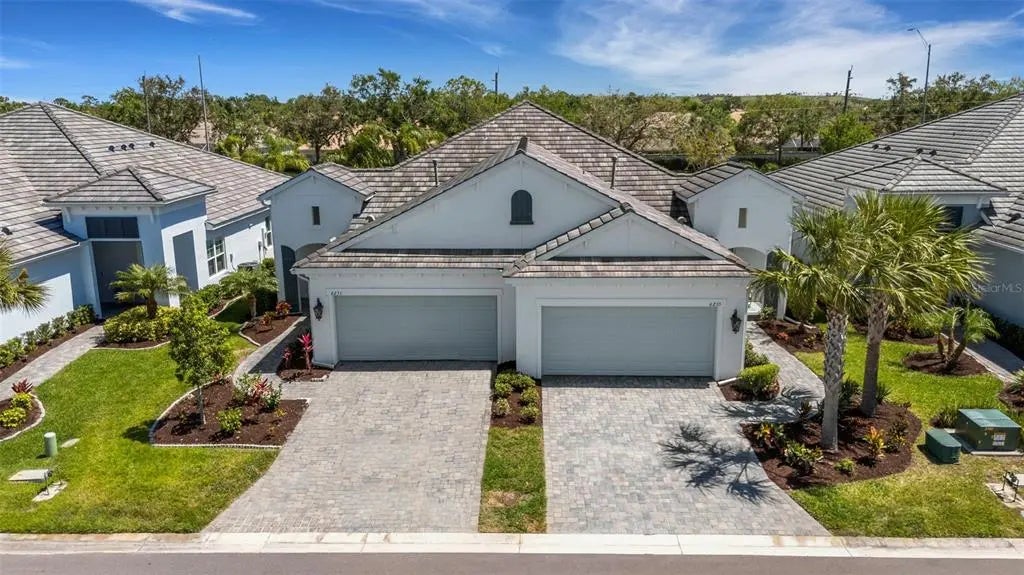 PERFECTION IN POINCIANA! This home shows like a model! Treat yourself to this absolutely darling 2Br/den attached villa in the maintenace free gated community of Poinciana. Quality built by Neal Communities with a British West Indies exterior flare, this Tidewater floorplan is a light, bright and open design. Relax and enjoy the outdoors and sunny Florida weather on your extended screened pavered lanai. This pristine home has gorgeous wood plank style ceramic tile floors thoughout every room except the 2 bedrooms. The beautiful kitchen showcases quartz counters, 36" shaker cabinets, stainless steel appliances, a 5 burner gas stove, under counter lighting, and an island with breakfast bar seating. The large greatroom is graced with a lovely tray ceiling with lots of recessed lighting. The spacious primary bedroom is a true owner's retreat with plenty of wall space for furniture placement, a large walk in closet and dual vanities with walk in shower. The guest bedroom has a large walk in closet as well. The versatile den can be used as a home office or potential 3rd bedroom. This Green-certified home was built with many energy saving features, a smart home package and impact resistant windows throughout! Home comes equipped with natural gas connections, a gas hot water heater, range, dryer and a gas connection on your lanai for your grill. With lawn care included in your HOA fees, you'll have so much more free time to enjoy the community's awesome amenities. You are just steps from the resort style heated community pool and spa, picnic area and nature trails. This quaint and peaceful community has low HOA fees of $368/month and NO CDD fees! This prime Bradenton location is super convenient and just minutes away from all sorts of shopping, restaurants, the UTC Mall, the airport, Benderson Park, downtown areas of Sarasota, Lakewood Ranch. You are also just a short drive to many of the areas award winning white sand beaches of the Suncoast! Home is available FULLY FURNISHED. Furniture sold on a separate agreement.