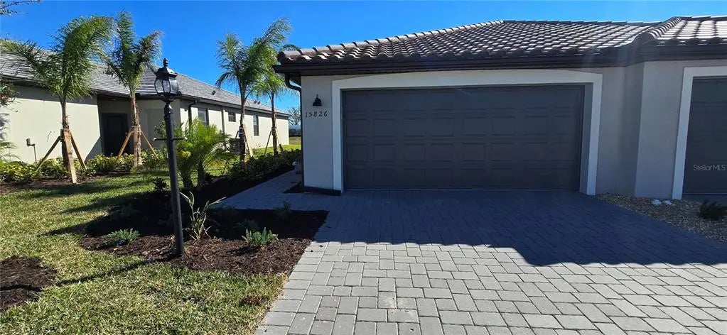 Brand new Lorraine Lakes Villa. 2 Bedroom, Den and 2 Baths. Tile Floors throughout the home. Screened in Lanai. Keyless entry, Quartz counter tops. All appliances included.