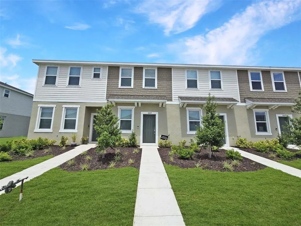 Annual rental located in the brand-new community of The Townhomes at Azario. This stylish brand-new two-bedroom, two-and-a-half-bath townhome offers 1,187 square feet of thoughtfully designed living space. The layout is both functional and inviting, featuring a contemporary kitchen situated at the front of the home, complete with sleek grey cabinetry, stainless steel appliances, quartz countertops, and a spacious pantry. The main level flows seamlessly into the open-concept dining and living areas, complemented by a convenient half bath and a private patio with serene lake views. Upstairs, the primary suite provides a peaceful retreat with a private en-suite bathroom that includes dual vanities and a walk-in shower. The secondary bedroom is generously sized and located off the 2nd bedroom is a full bathroom, along with two closets for additional storage. A full-size washer and dryer are conveniently located on the second floor for added ease. Residents will enjoy access to community amenities including a sparkling pool and a dog park, all within a beautifully maintained setting. Available for immediate move in after Gulf Coast approval and association approval.