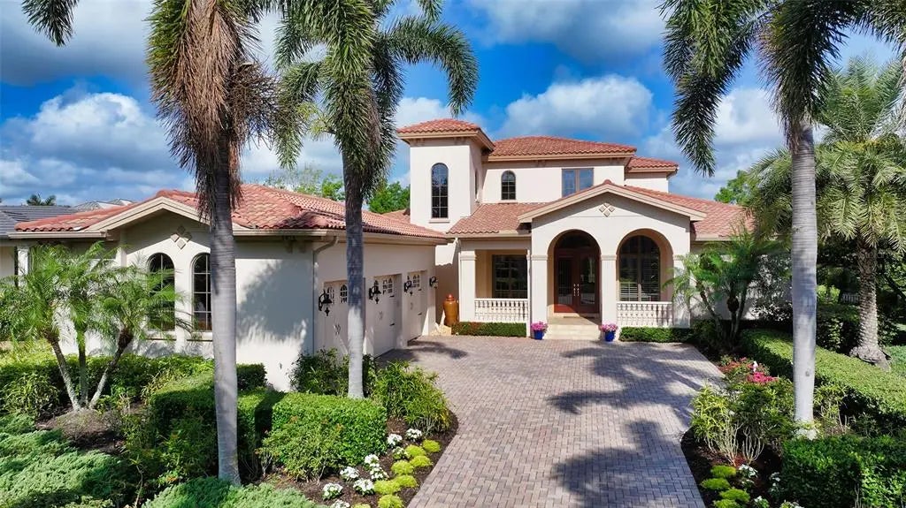 A refined masterpiece, this exceptional Marc Rutenberg home is perfectly positioned on a serene, nearly half-acre lakefront lot in Lakewood Ranch’s exclusive and distinguished community, The Lake Club. Blending elegance, craftsmanship, and tranquility, this residence is thoughtfully designed with classic architectural elements, including soaring ceilings, arched entryways, casement windows, enhanced crown molding, recessed lighting, and rich stone finishes and cabinetry. A long paver driveway and freshly painted exterior lead to a grand covered entry, where oil-rubbed bronze wrought iron double doors create a striking first impression. 4 spacious bedrooms, 4 full bathrooms, a dedicated office, and two versatile bonus/family rooms, one on each level, provide exceptional flexibility. The well-thought-out split floorplan ensures privacy, with each bedroom enjoying direct access to a full bathroom. At the heart of the home is a chef’s kitchen featuring Fieldstone cabinetry, granite countertops, premium GE Monogram appliances, central prep island with sink, counter-height bar seating, walk-in pantry, and panoramic views of the lanai and tranquil lake preserve beyond. The luxurious primary suite offers private lanai access and peaceful lake views, along with dual walk-in closets and a spa-style bathroom complete with dual vanities, soaking tub, large frameless glass walk-in shower, and private water closet. The second floor offers flexible living space with a spacious family room, bedroom, full bathroom, and a large covered balcony, perfect for multigenerational living, guest accommodations, or a private retreat. Outdoor living is elevated with two covered, screened lanais, one featuring a fully equipped outdoor kitchen, ideal for entertaining. A gas-heated saltwater pool and spa, surrounded by lush landscaping and serene views, provide a private sanctuary to relax or host guests year-round. Additional highlights include a 3-car side-entry garage, Leviton smart switches, built-in surround sound, zoned HVAC, fenced backyard, and generous storage throughout. Living in The Lake Club is more than homeownership, it’s a lifestyle. This prestigious, guard-gated community offers a 20,000 SF clubhouse with dining and bar service, 2 resort-style pools, state-of-the-art fitness and wellness center, tennis and pickleball courts, basketball, concierge services, and a full calendar of social events. Residents enjoy proximity to top-rated schools, fine dining, Waterside Place, UTC Mall, downtown Sarasota, and the world-renowned beaches of Siesta Key and Lido. This custom estate captures the very essence of timeless Florida living.