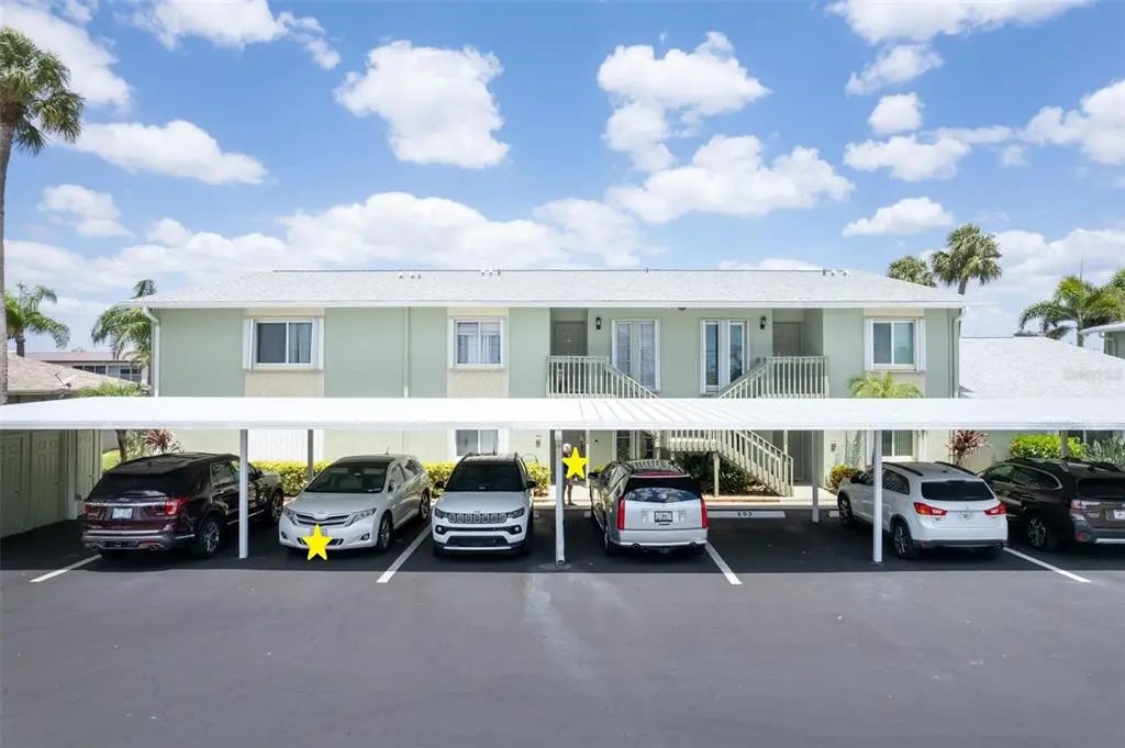 *Welcome to PARADISE Living at MARINA 46 – YOUR WATERFRONT OASIS in SE CAPE CORAL!* Discover this BEAUTIFULLY UPDATED FIRST FLOOR (ground level) GULF-ACCESS condo in the highly desirable MARINA 46 CONDOMINIUM, nestled in the CAPE CORAL'S WATERFRONT PARADISE! This SPACIOUS 2-BEDROOM, 2-BATHROOM UNIT with a DEN offers the PERFECT BLEND of COASTAL CHARM and MODERN CONVENIENCE, ideal for year-round living, a seasonal escape, or a high-demand vacation rental! Enjoy PEACE OF MIND knowing this UNIT has NEVER FLOODED, yet the SELLER OFFERS TRANSFERABLE FLOOD INSURANCE for added security at just approximately $1,350/year. Step inside to find a STYLISH REMODELED INTERIOR featuring: bright kitchen with bar seating, new unit ceiling, and eye-catching backsplash (2021), Premier vinyl flooring in the living area and primary bedroom (2021), porcelain tile in the primary ensuite bath (2021), white tile in the den, hallway, kitchen & main bath, all-new plumbing throughout the unit (2021), newer in-residence washer and dryer (2021), updated electrical work in the kitchen and ensuite, newer A/C unit, toilets, light fixtures, and smoke detectors, custom closets & dressing area by Closets by Design, seven modern 3-speed ceiling fans for year-round comfort. The SCREENED NORTH-FACING LANAI offers PEACEFUL VIEWS of the INTERSECTING CANAL - YOUR PERSONAL RETREAT to enjoy TRANQUIL SUNRISES and SUNSETS! Equipped with STORM SMART HIGH-IMPACT ELECTRIC HURRICANE SCREEN and MANUAL SHUTTERS on front windows, YOU ARE READY FOR ANY WEATHER! This unit also includes new lanai flooring (2021), storage closet in lanai and an additional locked storage unit near the assigned covered carport, under-cabinet lighting in the kitchen, access to the COMMUNITY POOL AND BOAT SLIP (first come, first serve). From your BACK DOOR, you’re just ONE BRIDGE AWAY the Caloosahatchee River, offering access to the Gulf of Mexico - A BOATER'S DREAM! Spend your days CRUISING THE WATERWAYS, LOUNGING BY THE POOL, or EXPLORING the VIBRANT DOWNTOWN CAPE CORAL scene. You’re just a short drive to WHITE-SAND BEACHES like SANIBEL (the World's Capital of SHELLING!), CAPTIVA, FORT MYERS BEACH, and the luxurious destinations of NAPLES, Bonita Springs/Estero and MARCO ISLAND. Whether you want to relax, entertain, or explore, this condo checks all the boxes! Don’t miss your chance to own a FULLY REMODELED WATERFRONT UNIT with GULF ACCESS right outside your door - A RARE GEM IN SOUTHWEST FLORIDA! **Remaining furniture is negotiable** SCHEDULE YOUR SHOWING TODAY AND START LIVING THE FLORIDA DREAM