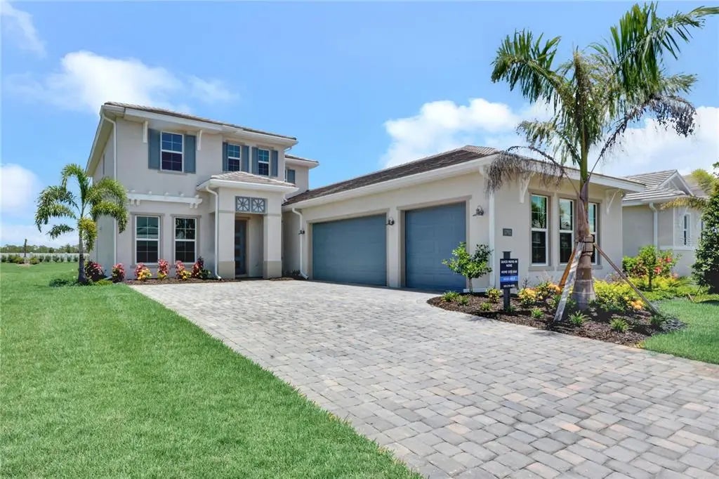 Under Construction. This meticulously designed four-bedroom, three-full-bath, and one-half-bath residence offers over 3,100 square feet of thoughtfully crafted luxury, nestled on a picturesque lot with water views and the ultimate in privacy, thanks to the landscaped privacy wall that encircles the community. Step inside and be greeted by a soaring two-story foyer and an open-concept floor plan that floods every corner with natural light. The gourmet kitchen is a chef’s delight, featuring premium stainless steel appliances, quartz countertops, an oversized island, and sleek, custom cabinetry. The primary suite is a private retreat with tranquil water views, a spa-inspired en suite bath with dual vanities, a soaking tub, and a walk-in shower, along with a generously sized walk-in closet. Upstairs, a spacious loft offers endless possibilities—whether you envision a game room, home theater, or lounge space. The flex room on the main floor adds even more versatility, ideal for a home office, gym, or additional dining space. Entertain or unwind in style on the covered patio, where the waterfront backdrop and lush landscaping provide a sense of peace and exclusivity. From high-end finishes to functional design, every detail has been curated for a lifestyle of comfort and sophistication. Schedule your private tour today!
