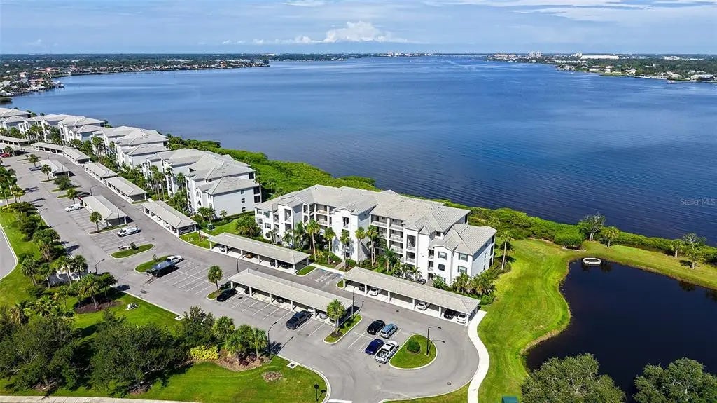 Stunning Birkdale model condo available now. BOATERS WELCOME!! Overlooking the majestic Manatee River, this beautifully appointed 2 bedroom, 2 bath condo is ready for new owners! Situated in the 24/7 Guard Gated Community of Tidewater Preserve, this well-maintained condo offers tile on the diagonal throughout the main living, dining area and LVP flooring in both bedrooms. You will be impressed with all the upgrades, which include an entire wall featuring marble ledger stone, electric fireplace, crown molding, and high-end lighting throughout the house. The kitchen offers 42" Shaker cabinets, whole house water filtration, quartz counters, stylish backsplash, pendant lighting, and a spacious island with eat in bar (stools included). Enjoy your Sunset Sanctuary by Relaxing on your screened lanai with roll-down shades, tiled flooring, and included outdoor furniture while you take in year-round sunsets—and keep an eye out for dolphins and manatees! The 2 bedrooms are situated down the hallway from the main living/kitchen.The primary bedroom fits a king size bed easily, walk in closet and linen closet, the ensuite bathroom features a large walk in shower, quartz countertops and upgraded fixtures. The secondary bedroom is available for guests or a home office. The laundry room supports a full size washer and dryer and has space for additional storage. This condo also offers an additional storage closet located just outside of the front door opposite the stairs and an assigned carport. The community of Tidewater Preserve offers a Clubhouse, Community Pool w/ lap lanes, a pergola covers the area with a gas grill and Fireplace for outdoor entertaining. Additionally, there are har tru Tennis Courts, dog park, walking trails, and a playground. The Community also offers a Boat Marina with a Max Boat Size: 32 FT. Slips for rent only and paid annually. There is a lock system to get boats to/from Manatee River. There is a Boat Ramp within the Community. Canoe and Kayak enthusiasts, racks available for rent and a private launch. This community has 2 fitness centers, and 2 additional satellite pools. Close to Lakewood Ranch, beaches, restaurants, UTC mall, Costco Plaza, and golfing! Call today for a private showing.