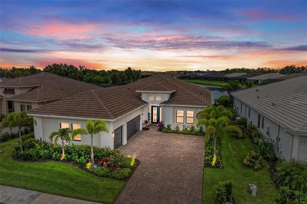 Picture yourself starting each day with the peaceful serenity of water views and ending it with vibrant sunsets, all from the comfort of your own home. This exquisite 3-bedroom, 2,770 sq. ft. Santa Rosa model in the highly coveted Cresswind 55+ community offers an unparalleled living experience. With a westward-facing lot that overlooks serene waters, this is truly one of the most sought-after homes in the neighborhood—if not the best lot in all of Cresswind. This home blends sophistication with functionality, from its thoughtful design to the high-end upgrades that make every inch feel like a luxury retreat. The gourmet kitchen is a culinary dream, equipped with a 6-burner range, custom hood, upgraded vinyl cabinets, and additional cabinetry in both the laundry room and office, providing ample storage and organization. Whether you’re cooking for family or entertaining friends, this kitchen is the perfect space for creating memories. The great room is a masterpiece, with a custom slatted wood wall unit, large TV wall, and cozy fireplace that brings both warmth and charm to the space. The expansive layout seamlessly flows into the private owner’s suite, where a custom door leads directly to the lanai, offering a tranquil retreat with direct access to your personal slice of paradise. Outside, the travertine lanai floors, motorized outdoor screens, full outdoor kitchen, pool, spa, and gas fire pit create a true outdoor oasis—perfect for relaxing or hosting gatherings in style. Every sunset becomes a showpiece as the colors reflect across the water, making this space perfect for alfresco dining or peaceful contemplation. Additional features include high-impact hurricane windows, a Generac generator (negotiable), gutters, upgraded landscaping, and ceiling fans throughout the home, adding both convenience and comfort to your lifestyle. The Cresswind at Lakewood Ranch community offers more than just a home; it provides a lifestyle. Designed for active adults aged 55+, this vibrant community features resort-style amenities such as a state-of-the-art clubhouse, fitness center, resort-style swimming pool, and multiple courts for tennis and pickleball. Enjoy the scenic walking and biking trails that wind through lush landscapes, or take part in one of the many social events, workshops, and fitness classes designed to foster community and well-being. Whether you're unwinding with a yoga class, making new friends over dinner, or enjoying a leisurely stroll along the water, Cresswind is a place where you can live life to the fullest, surrounded by beauty, nature, and a vibrant community of like-minded individuals. Don’t miss this rare opportunity to own one of the best homes in Cresswind. Schedule your private tour today and start living the lifestyle you deserve.