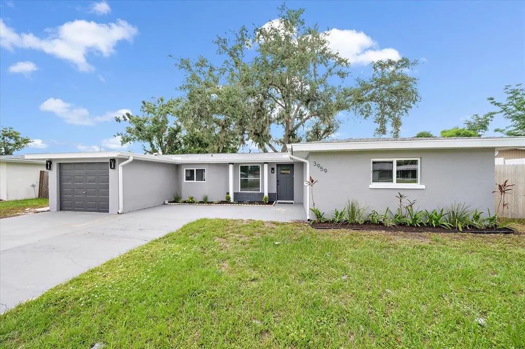 Welcome to this modern, updated 2-bedroom, 2-bath home with a 1-car garage & over-sized driveway located in the desirable Lake Sarasota community. Enjoy the freedom of no HOA and no deed restrictions. The open-concept kitchen is the heart of the home, thoughtfully renovated with crisp white cabinetry that brings a light, fresh atmosphere to the space. Gleaming stainless steel appliances provide both style and reliability, while luxurious quartz countertops add a touch of sophistication and durability. The kitchen’s spacious breakfast bar seamlessly connects with the living and dining areas, creating the perfect setting for casual family mornings or lively gatherings with friends. The living room is highlighted by a stunning stone fireplace that adds warmth & a cozy focal point. The primary bedroom offers a peaceful retreat with ample closet space and natural light. Beautifully Renovated Bathrooms. The primary suite features a luxurious en-suite bath with dual sinks, quartz countertops, and a walk-in pebble stone shower with a sleek rolling glass door. The second bedroom is cozy and versatile. The second bathroom includes a tub/shower combo, quartz vanity, and modern fixtures — perfect for guests or family. The entire home has durable tile flooring throughout — no carpet anywhere! Fresh interior paint and stylish fixtures add to the clean, contemporary feel. Step outside to a fully fenced, spacious backyard — perfect for pets, play, or entertaining. A beautiful mature oak tree provides shade and character, while an additional shed offers extra storage for tools, toys, or hobbies. Ideally situated with seamless access to I-75, Sarasota’s top-rated schools, shopping, dining, scenic parks, and the pristine shores of the Gulf Coast. Whether you're a first-time homebuyer, seasonal snowbird, retiree seeking comfort, or an investor looking for an opportunity, this home is a perfect fit for every lifestyle.