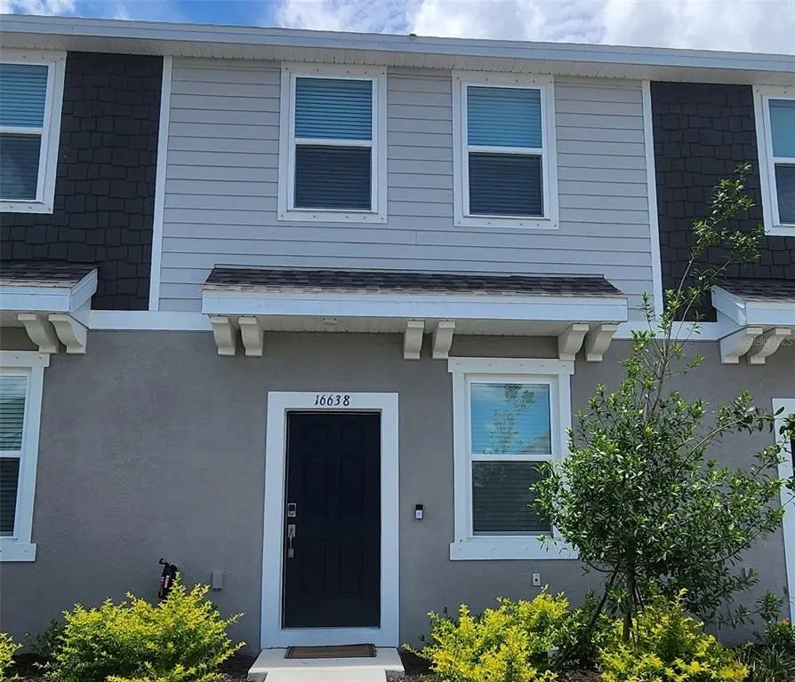 Step into comfort and style with this brand-new 2024-built townhome located in the desirable Townhomes at Azario. This cozy yet modern 2-bedroom, 2.5-bath home offers a thoughtfully designed layout perfect for everyday living and entertaining. Downstairs, enjoy an open-concept floorplan with a bright white kitchen featuring quartz countertops and plenty of cabinet space, flowing seamlessly into the living and dining areas. Sliding glass doors lead to a private outdoor patio—ideal for your morning coffee or evening wind-down. A convenient half bath on the main level is perfect for guests. This townhome is available turnkey. Upstairs, both bedrooms showcase an ensuite bathrooms for privacy and comfort. The spacious primary suite includes dual sinks and a sleek glass-enclosed shower, while the second bedroom features a shower/tub combo. The upstairs laundry room adds everyday ease. Assigned parking is included, and the community itself offers resort-style amenities including a sparkling pool with cabanas and a dog park for your furry friends. Warm, welcoming, and move-in ready—this townhome is the perfect place to call home.