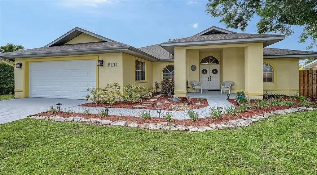 Beautifully maintained 3-bedroom, 2-bath home with a versatile office/den in a quiet, established neighborhood with no CDD fees and no HOA. This light-filled, open-concept layout features tile and laminate flooring throughout main living areas, a spacious kitchen, split-bedroom floor plan, and a generous primary suite with walk-in closet and en-suite bath. Recent upgrades include a new roof (Dec 2024), new A/C system (Nov 2022), and a new fully fenced backyard (Dec 2024). The outdoor space is a true oasis, showcasing a large screened-in pool with a waterfall aquascape and a covered lanai—perfect for relaxing or entertaining. Conveniently located just minutes from downtown Bradenton’s shops, dining, and riverfront events, and a short drive to the beaches of Anna Maria Island. Enjoy the best of Florida living with privacy, comfort, and prime location.