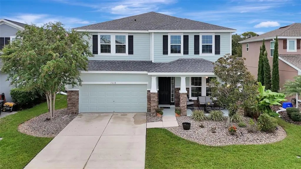 Imagine pulling into a neighborhood that feels tucked away yet so close to everything — At 7448 47th Avenue Circle East, every detail has been considered so you can simply move in and enjoy. From the moment you step inside, light bounces off freshly painted walls (2021) and new fixtures, while soft carpet underfoot (2021) gives the upstairs spaces a warm, welcoming feel. The brand-new roof (Aug 2025) and fresh exterior paint (2025) mean peace of mind for years to come. Even the little details — like updated landscaping (2022), leveled pool pavers (2024), and re-screened windows — speak to a home that has been cared for inside and out. The layout flows with both function and charm: a first-floor guest suite create a private retreat for visitors and the den for work-from-home needs, while upstairs, the primary suite becomes your sanctuary. It’s not just oversized — it features a cozy nook that’s perfect for curling up with a book, sipping morning coffee, or creating your own lounge space. Two additional bedrooms and a large bonus room make it easy to spread out, play, or gather together. Step outside, and life here just gets better. A sparkling pool and screened lanai set the stage for summer barbecues, weekend swims, or quiet evenings under the stars. Beyond the lanai, your yard offers a tropical touch with banana plants, an orange tree, and a Limon tree- all fruit bearing and perfect for picking fresh fruit before a swim or adding a homegrown twist to your favorite recipe. And when you’re ready to venture out, you’ll love how easy it is to get anywhere — just minutes from I-75, shopping, dining, and everyday conveniences. With a low HOA fee and no CDD, this community offers both charm and value. This isn’t just a house — it’s a home designed to be lived in, loved, and enjoyed for years to come.